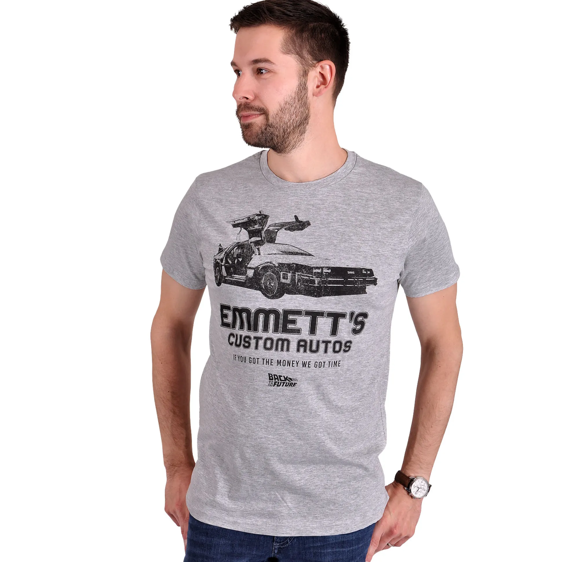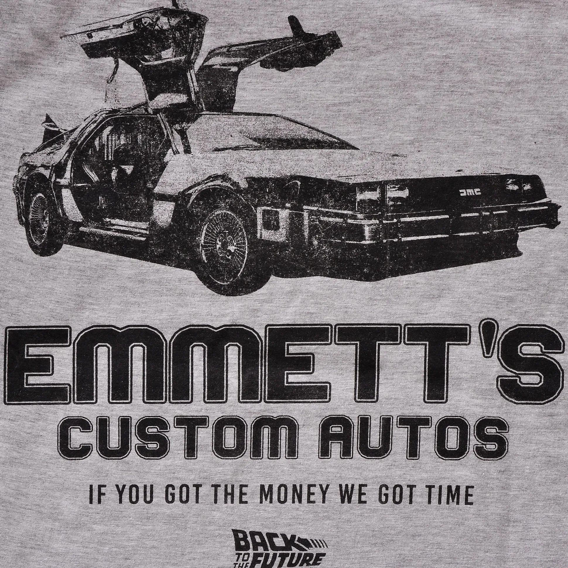 Klaar om in stijl door de tijd te reizen? Met het officiële ‘Back to the Future – Emmett’s Custom Autos’ T-shirt ben jij helemaal klaar om de fluxcapacitor aan te zwengelen – zelfs zonder plutonium op zak. Opvallende frontprint in verweerde look: het iconische garage-logo van Doc Brown mét DeLorean! Comfortabele rechte pasvorm en ronde hals, dus je blijft relaxed, zelfs als je per ongeluk naar 1955 sprint. De enige garage waar je graag in de rij staat? Tuurlijk, bij Emmett’s! Weg van Biff, hoverboards testen, geschiedenis herschrijven – in dit shirt ben jij altijd de baas van tijdreizend fandom. (Let op: onverwachte tijdsprongen mogelijk!)