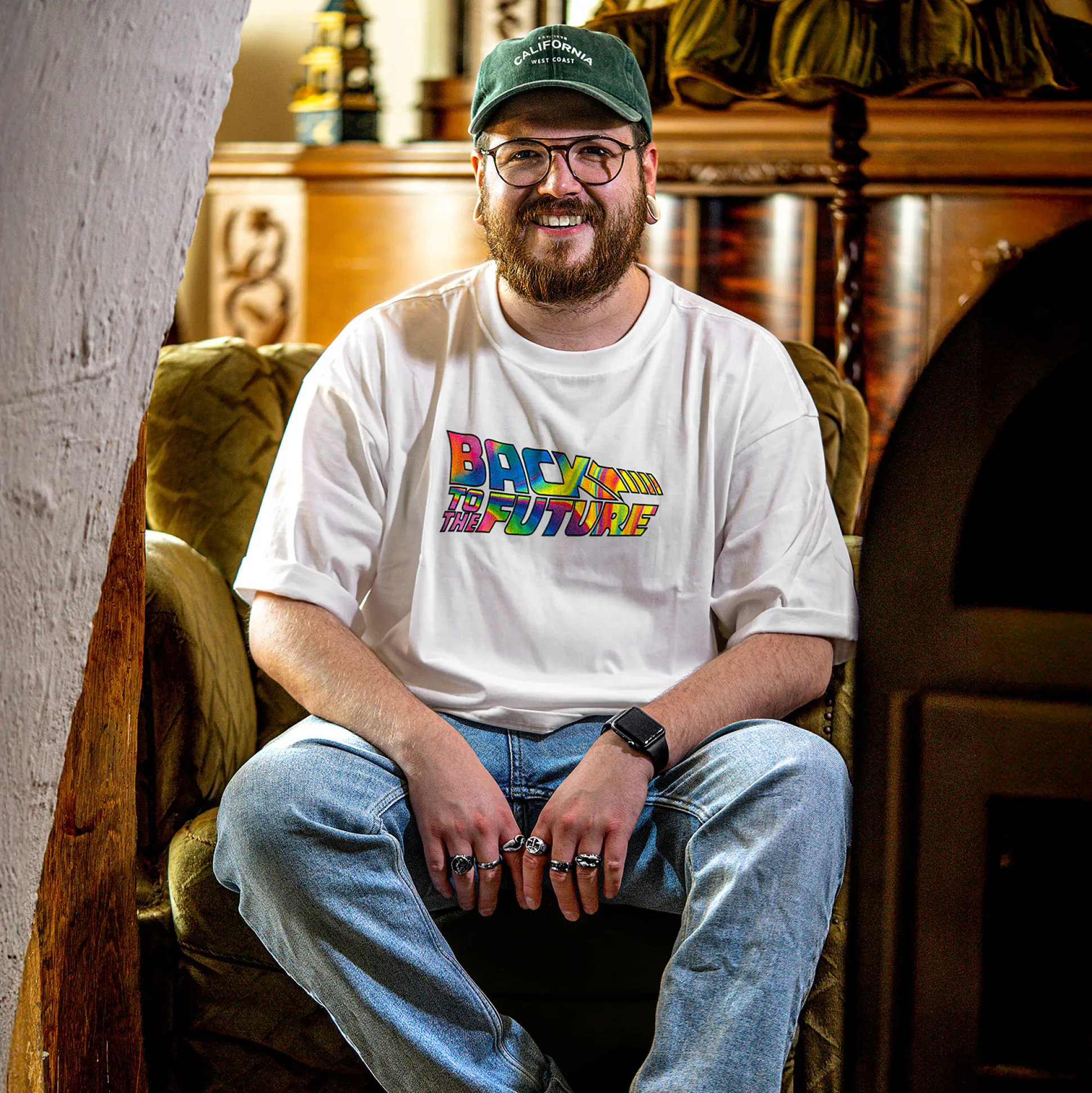 - Terug naar de Toekomst logo op de voorkant in retro design