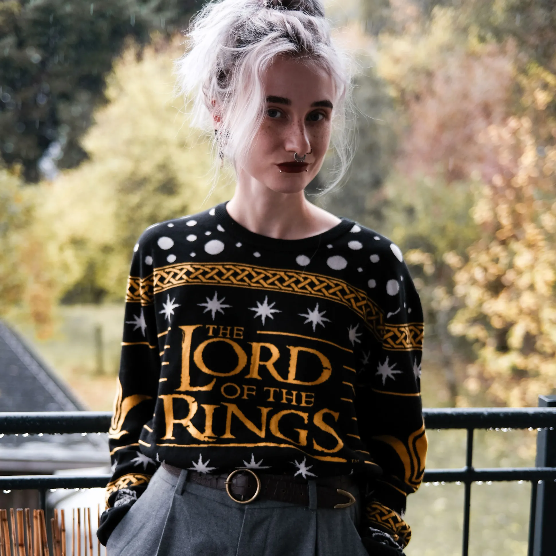 Winter in Midden-aarde? Met deze officieel gelicenseerde The Lord of the Rings foute kersttrui ben je klaar voor Gondor. Het design combineert het filmlogo, de Witte Boom van Gondor en de ringinscriptie, omlijst door een dubbelzijdig Noors patroon vol symbolen en natuurlijk de Ene Ring. Zwart met gele accenten, superzacht en feest-proof.
