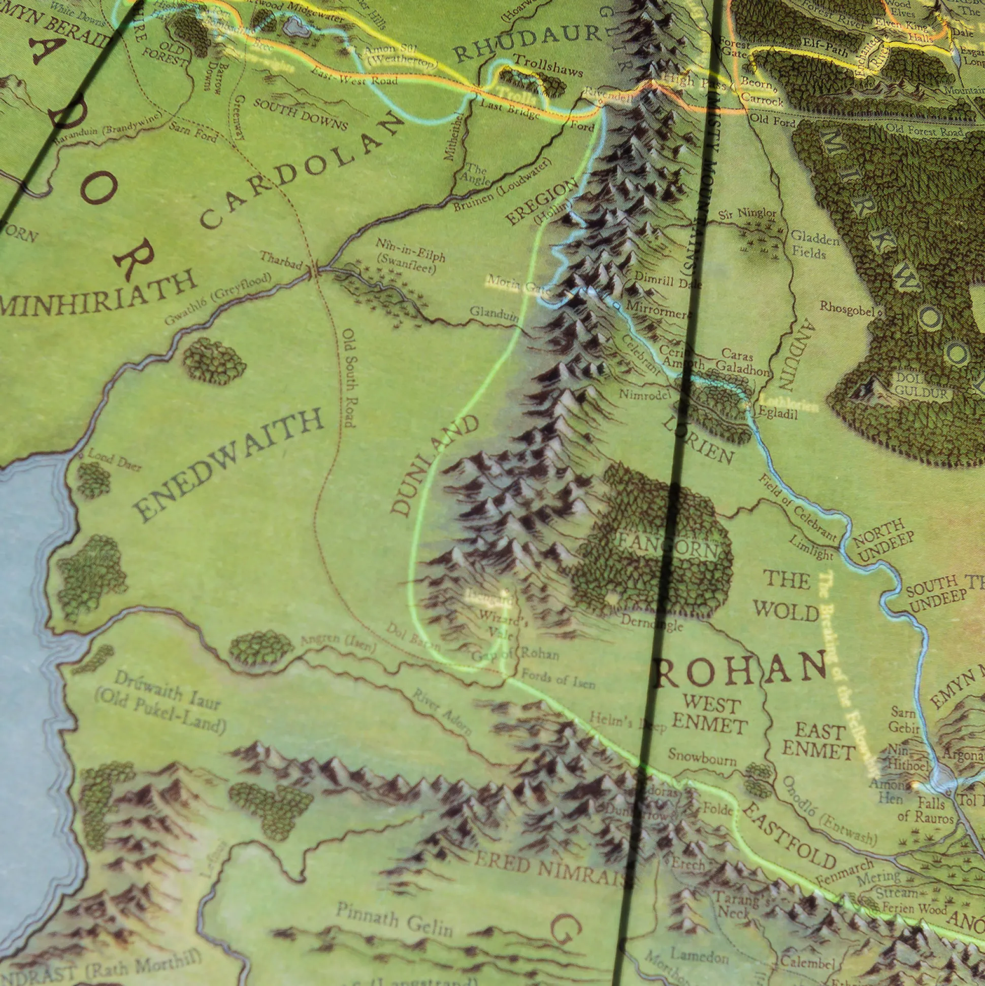 - toont de volledige topografie van Tolkiens Midden-aarde wereld