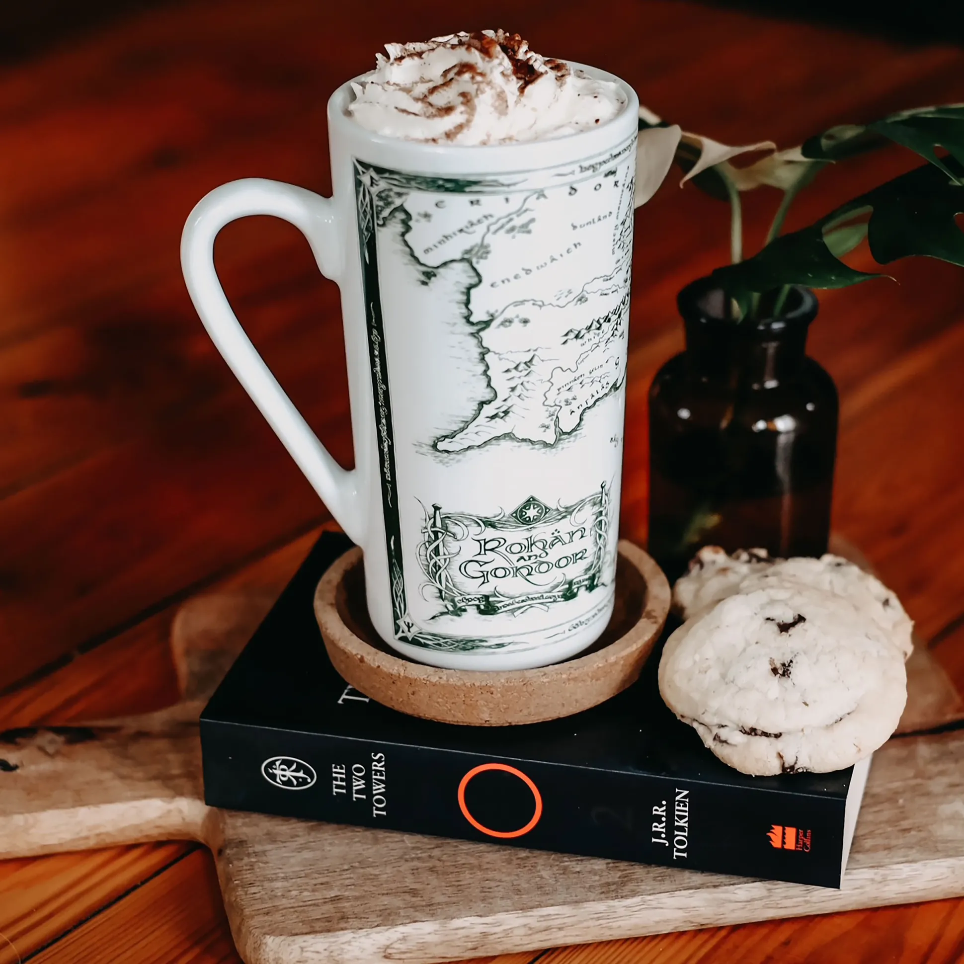 Een volledige tocht door Midden-aarde in 470 ml! Deze officieel gelicenseerde “The Lord of the Rings”-mok stuurt je bij elke slok op reis van Rohan naar Gondor. Aan de buitenkant vind je een gedetailleerde kaart van beide koninkrijken, zodat je tijdens je koffie alvast je volgende avontuur kunt plannen – of gewoon kunt checken hoe ver het nog is tot Minas Tirith.