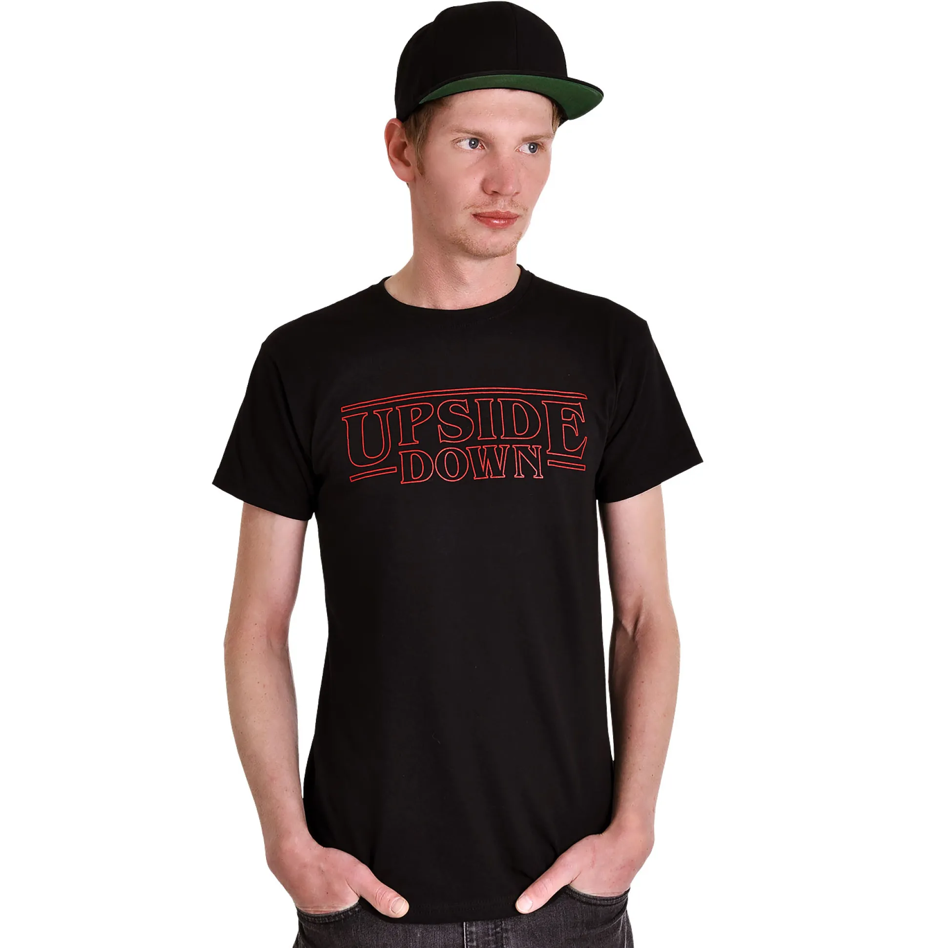 Dacht je dat je alles van Stranger Things al gezien had? Tijd om de andere kant op te gaan – met het Upside Down T-shirt! Zwarte katoen, opvallende print van Hawkins’ bekendste onderwereld én een klassieke ronde hals. Perfect voor het binge-watchen van je favoriete afleveringen, het ontwijken van Demogorgons, of gewoon chillen op de bank – deze rechte pasvorm zit altijd goed. Of je nu een tripje maakt in het lab of vrienden aan het laten schrikken bent, dit shirt scoort sowieso punten. Haal het Upside Down nu in huis (en ja, je woonkamer blijft rechtop staan).
