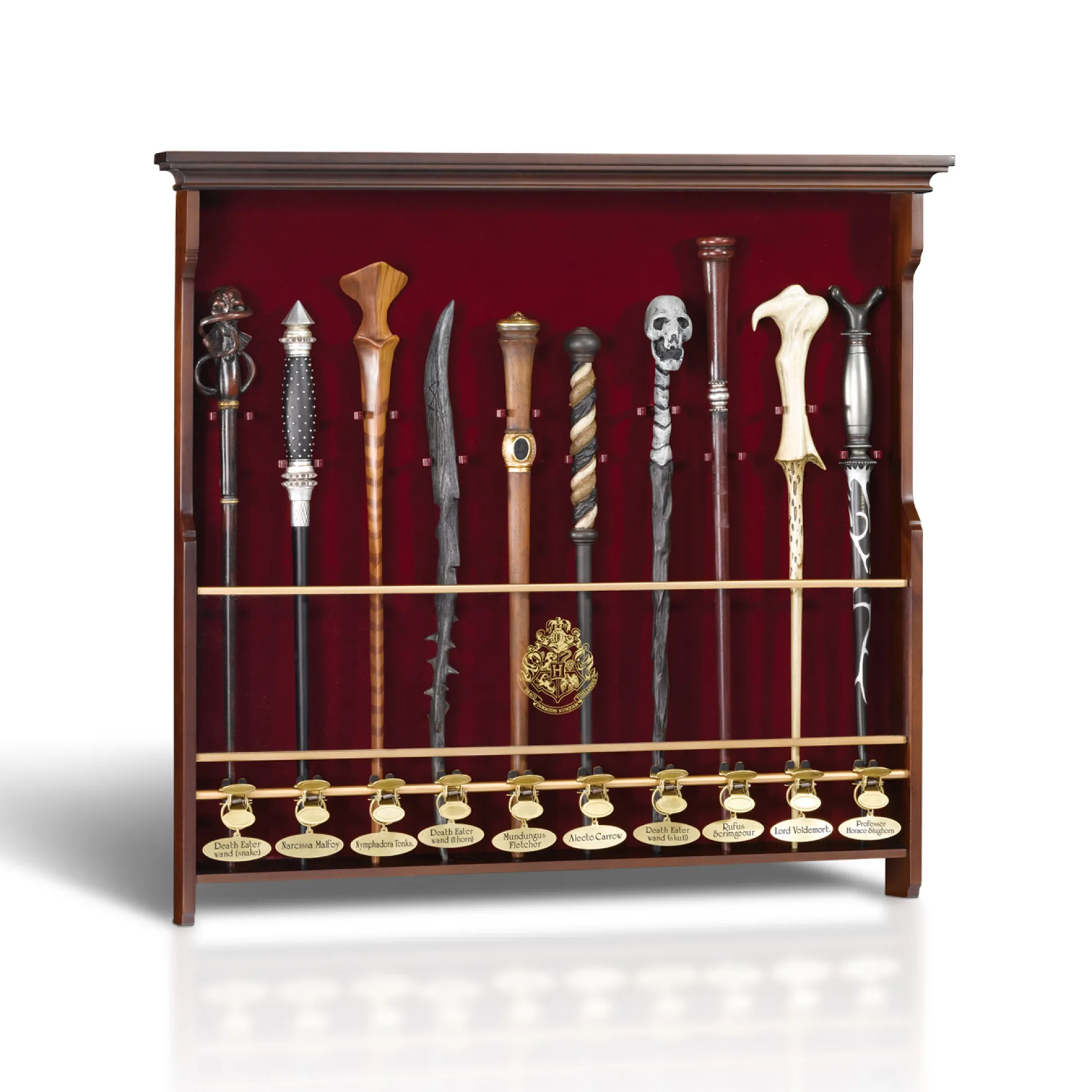 Deze wandhouder is gemaakt van stevig en elegant gelakt hout en biedt ruimte voor maximaal tien toverstokken uit de Harry Potter karaktercollectie. De naamplaatjes die bij de toverstokken worden geleverd, kunnen worden geplaatst op een vergulde staaf op de wandhouder. Zo weet je precies welke toverstok bij welk personage uit de Harry Potter-films hoort.