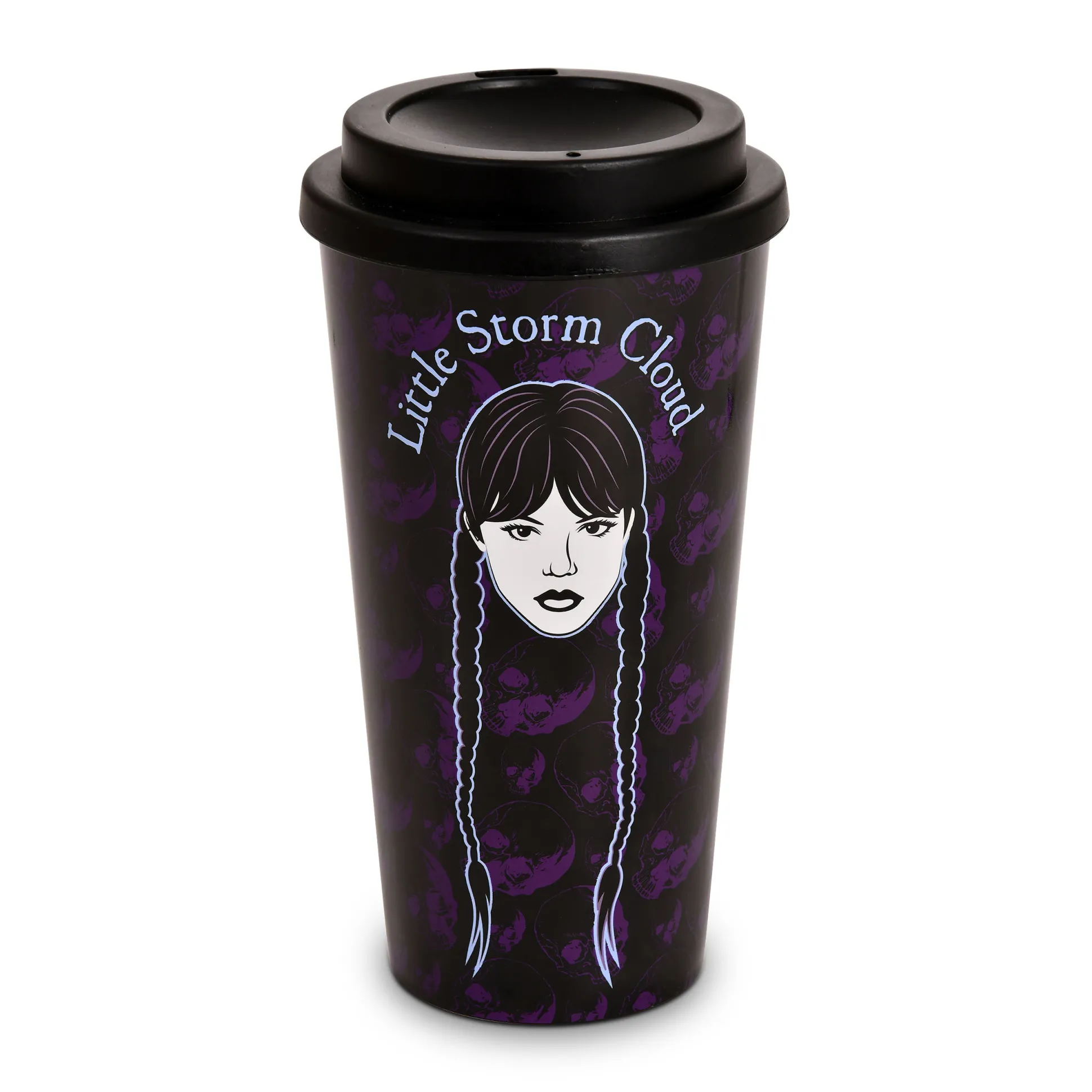 Hou jij van koffie zo zwart als je humor? Wednesday knikt. Deze officieel gelicenseerde Wednesday reisbeker heeft haar naam en iconische hoofd – minimalistisch, duister, precies goed. Dubbelwandig met schroefdeksel, zodat er niets morst terwijl je je pokerface perfectioneert. Inhoud 520 ml, 17,5 cm hoog – genoeg voor college, kantoor én een middernachtelijke omzwerving. Belangrijk: niet geschikt voor vaatwasser of magnetron. Alleen met de hand afwassen – precies zoals Wednesday het wil. Breng een vleugje duisternis naar je dag.