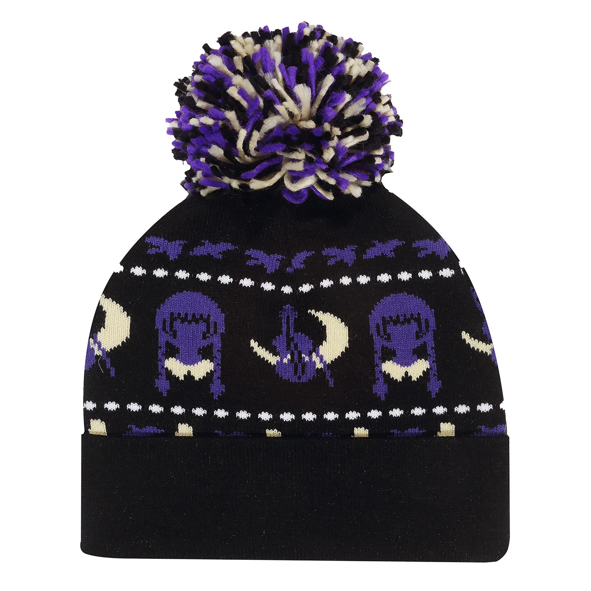 Ben je klaar om eer te bewijzen aan de duistere elegantie van Wednesday Addams? Met de officieel gelicenseerde ‘Wednesday – Midnight Muts met Pompon’ blijf je niet alleen warm, maar ook griezelig stijlvol tijdens de koude dagen. Het geborduurde Wednesday-logo op de omslag laat iedereen zien: hier komt een echte fan met smaak! De combinatie van zwart en paars past perfect bij jouw mysterieuze uitstraling – of je nu in de schaduwen beweegt of gewoon de kou trotseert. Dankzij de one-size-fits-all hoef je je geen zorgen te maken over de pasvorm – hij zit als gegoten, of je nu een hoofd vol duistere gedachten hebt of gewoon warme oren wilt. En als je geen zin hebt in smalltalk, zet gewoon de muts op – hij spreekt voor zich. Waar wacht je nog op? Word deel van de duistere Wednesday-wereld en voeg een vleugje gothic charme toe aan je dagelijks leven!