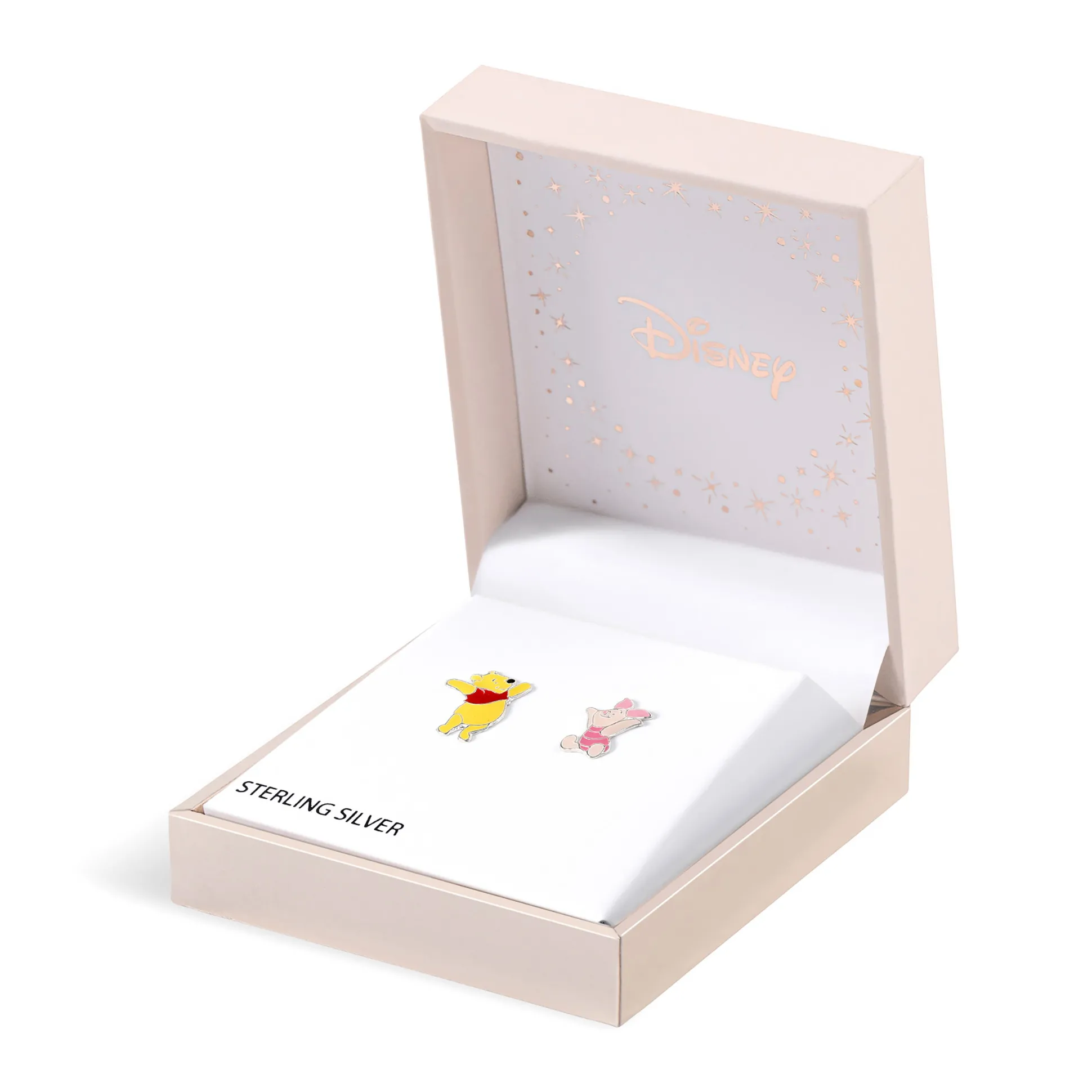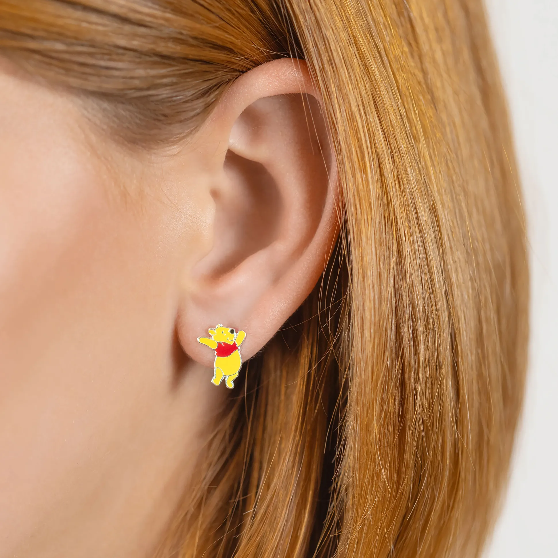 Winnie de Poeh en Knorretje – nu op je oren. Officieel gelicentieerde Disney oorstekers, bewust niet identiek: één Winnie de Poeh (1 x 1,3 cm) en één Knorretje (0,8 x 1,2 cm). Klein, lief en meteen herkenbaar – jouw dagelijkse portie Honderd Bunderbos.