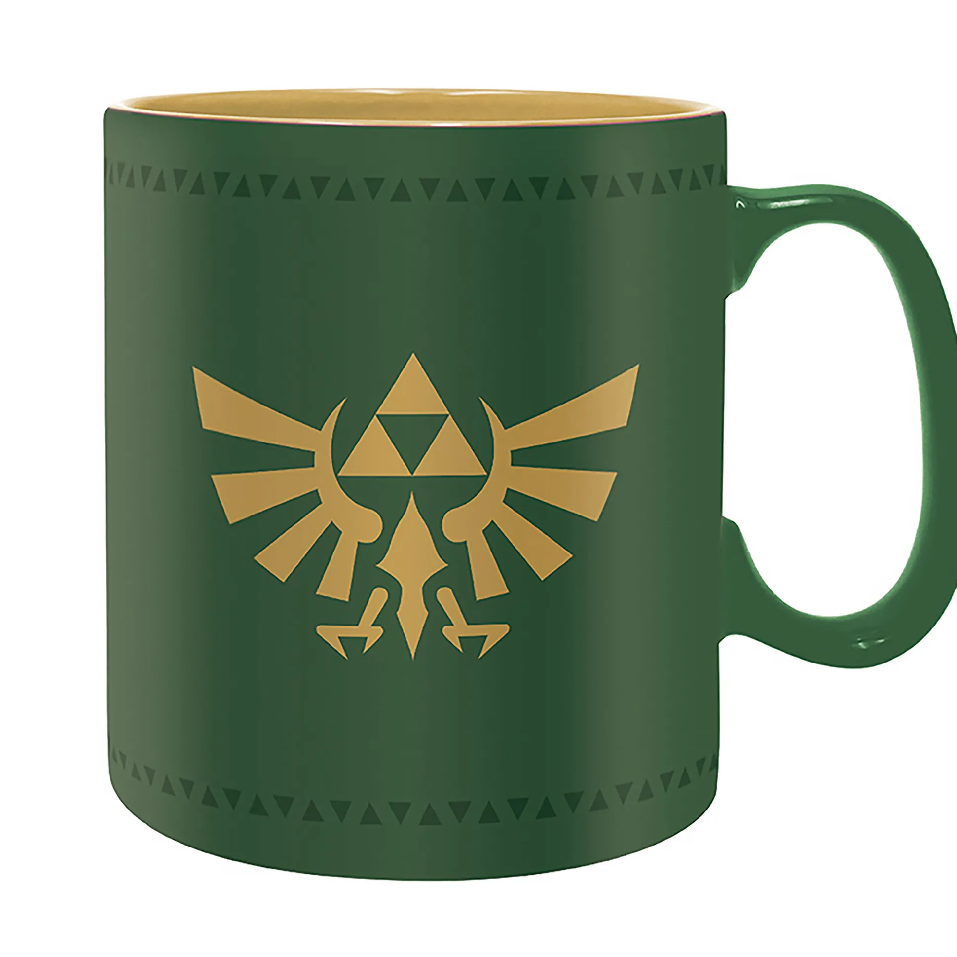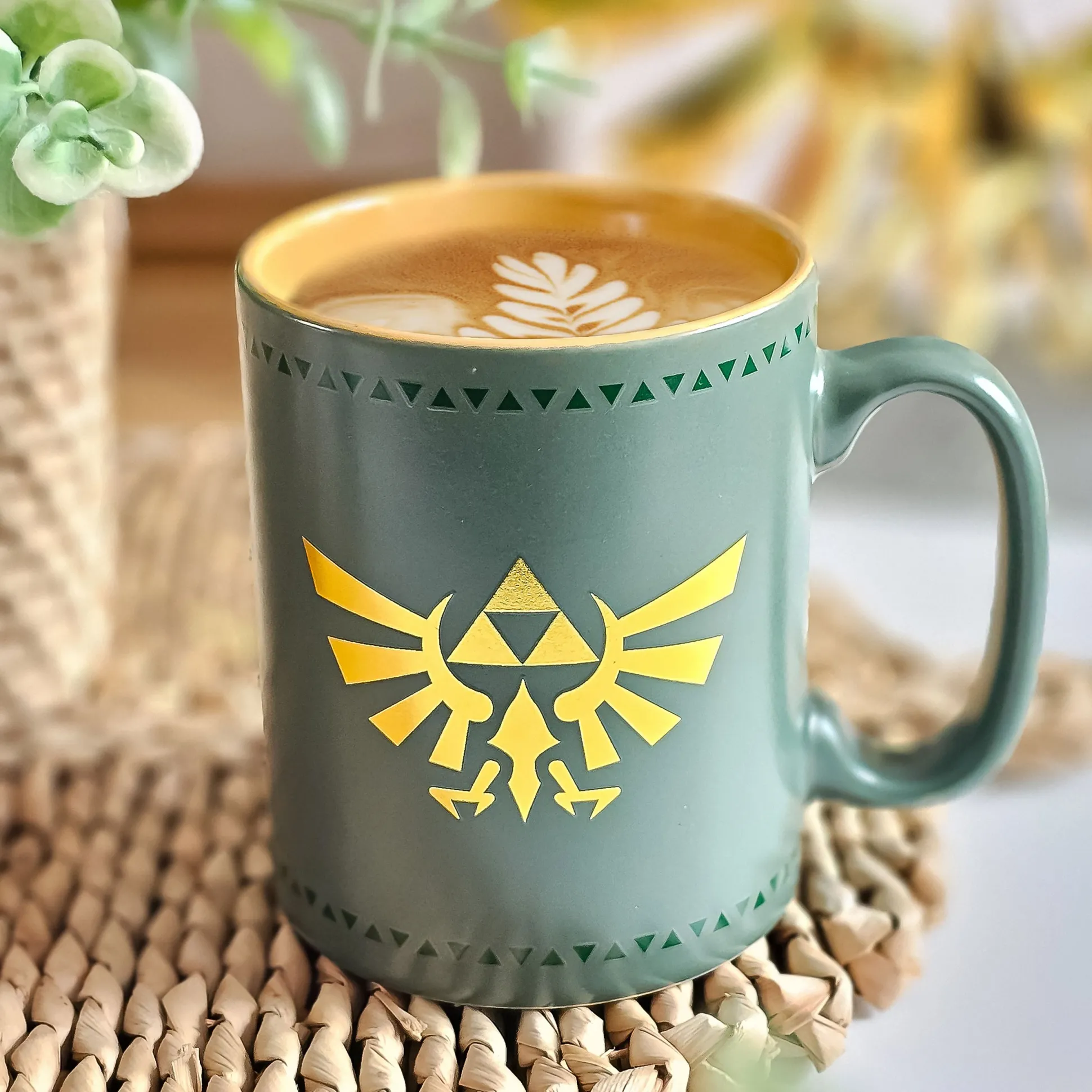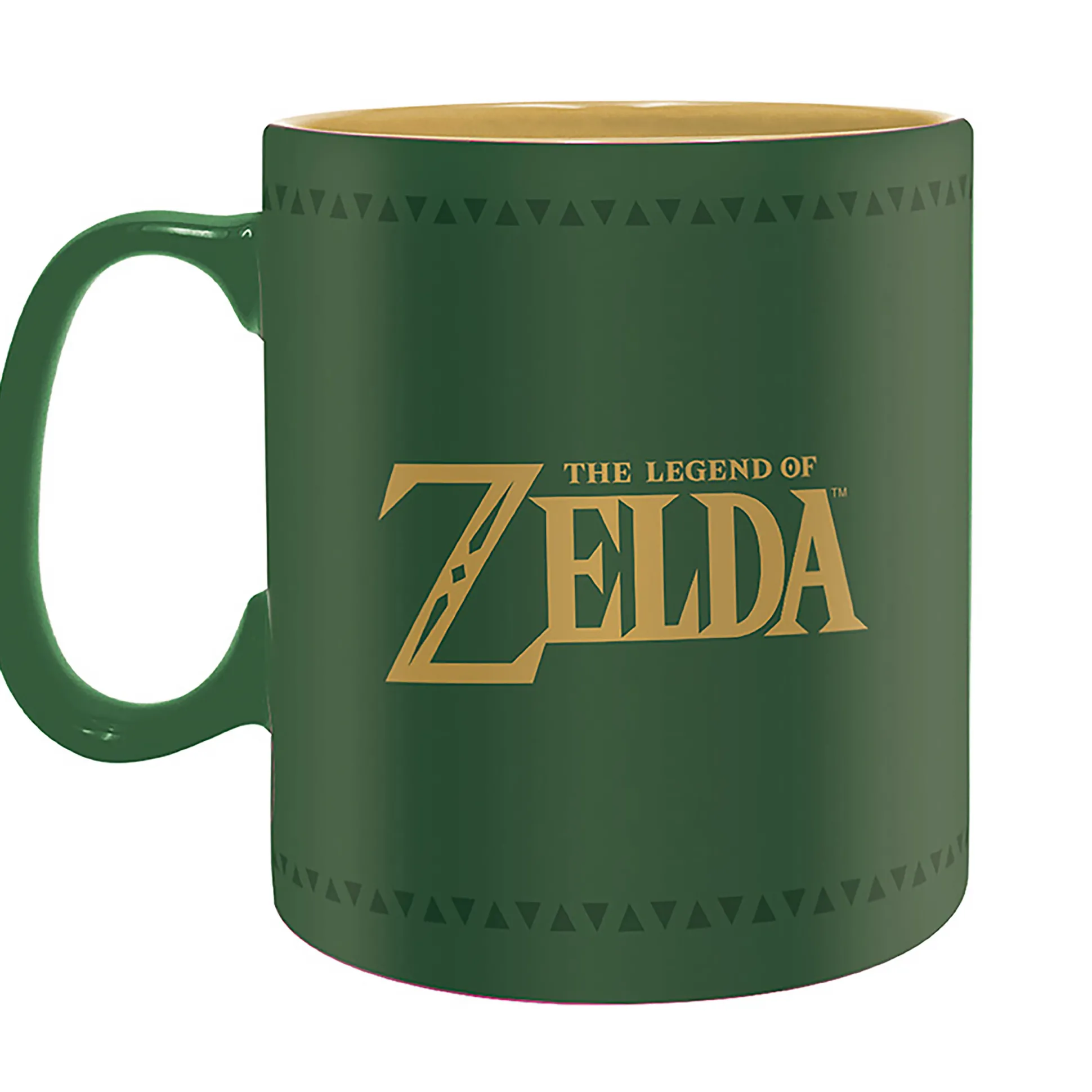 Klaar voor legendarische koffiepauzes? Deze officieel gelicenseerde Nintendo Zelda mok haalt Hyrule naar huis. Op diep groen schitteren het Hyrule-wapen en het Zelda-logo in goud — stijlvol genoeg voor het kasteel, sterk genoeg voor je dagelijkse leven. Met 460 ml inhoud kom je moeiteloos door main- en sidequests. Verzorgingstip: alleen met de hand afwassen; niet geschikt voor vaatwasser of magnetron. Zo blijft de goudkleurige afwerking mooi. Kleur: groen & goud. Een level-up voor elk drankje!
