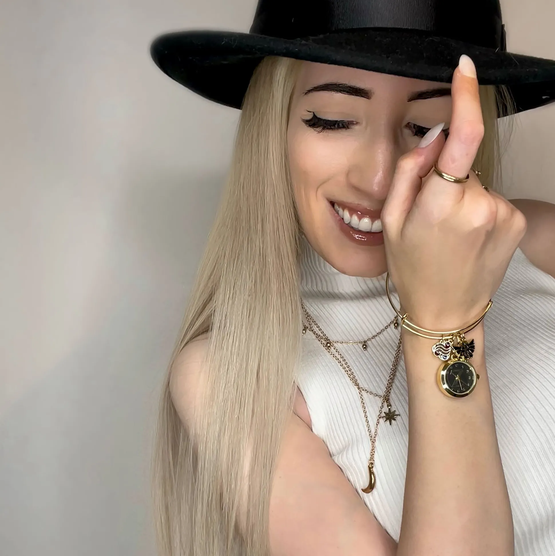 - met mini-horloge en 4 symbol charm hangers