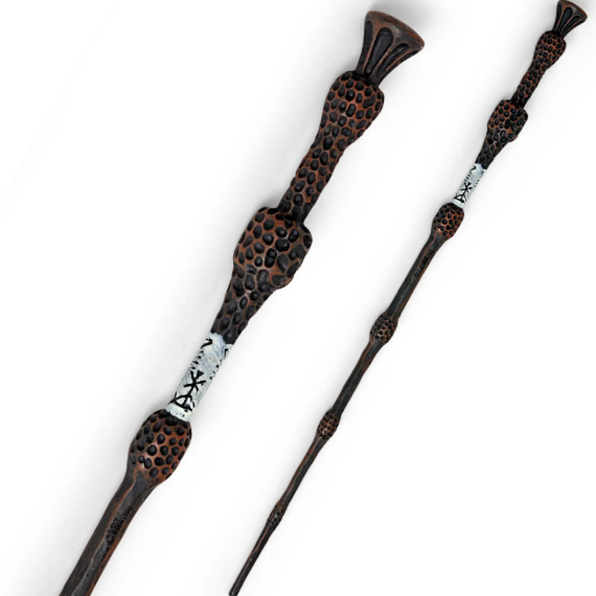De toverstaf van Albus Perkamentus is donkerbruin en zeer fijn bewerkt. Het heeft verschillende uitstulpingen die groter worden richting het handvat, die voorzien zijn van een puntige structuur. Op de overgang naar het handvat bevindt zich een witte band waarop zwarte ornamenten zijn gegraveerd. Bovendien is het een zeer speciale toverstaf. Het is de Zegevlier, een Relikwie van de Dood, die alleen volledig kan worden gebruikt door degene die de dood accepteert. In het origineel werd het gemaakt van vlierhout (engl. Elder = vlier) en is 16 inch lang.