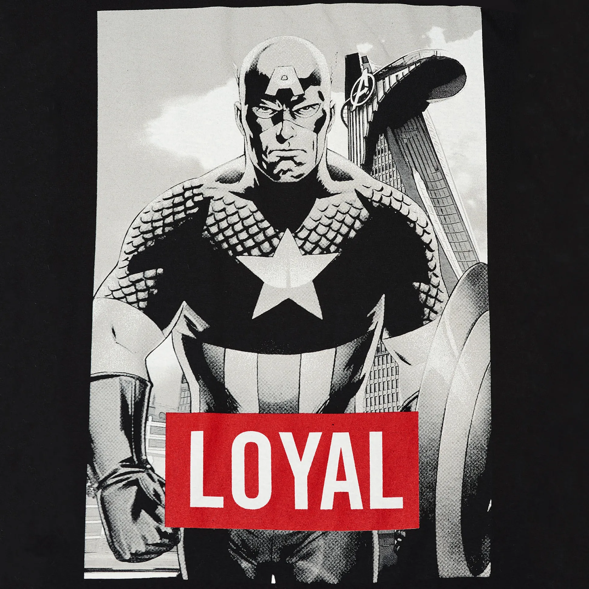Voor de fans die liever een schild dan standaard hebben: het officiële Captain America Loyal T-shirt! Gigantische Cap-print aan de voorkant—zo weet iedereen aan welke kant je staat (hint: Avengers!). Zwart, lekker recht model, ronde hals. Perfect voor in de sportschool, op Avengers-missie—of gewoon tijdens de Netflix-marathon. Avengers verzamelen—de trouwste fan is klaar om te shinen!