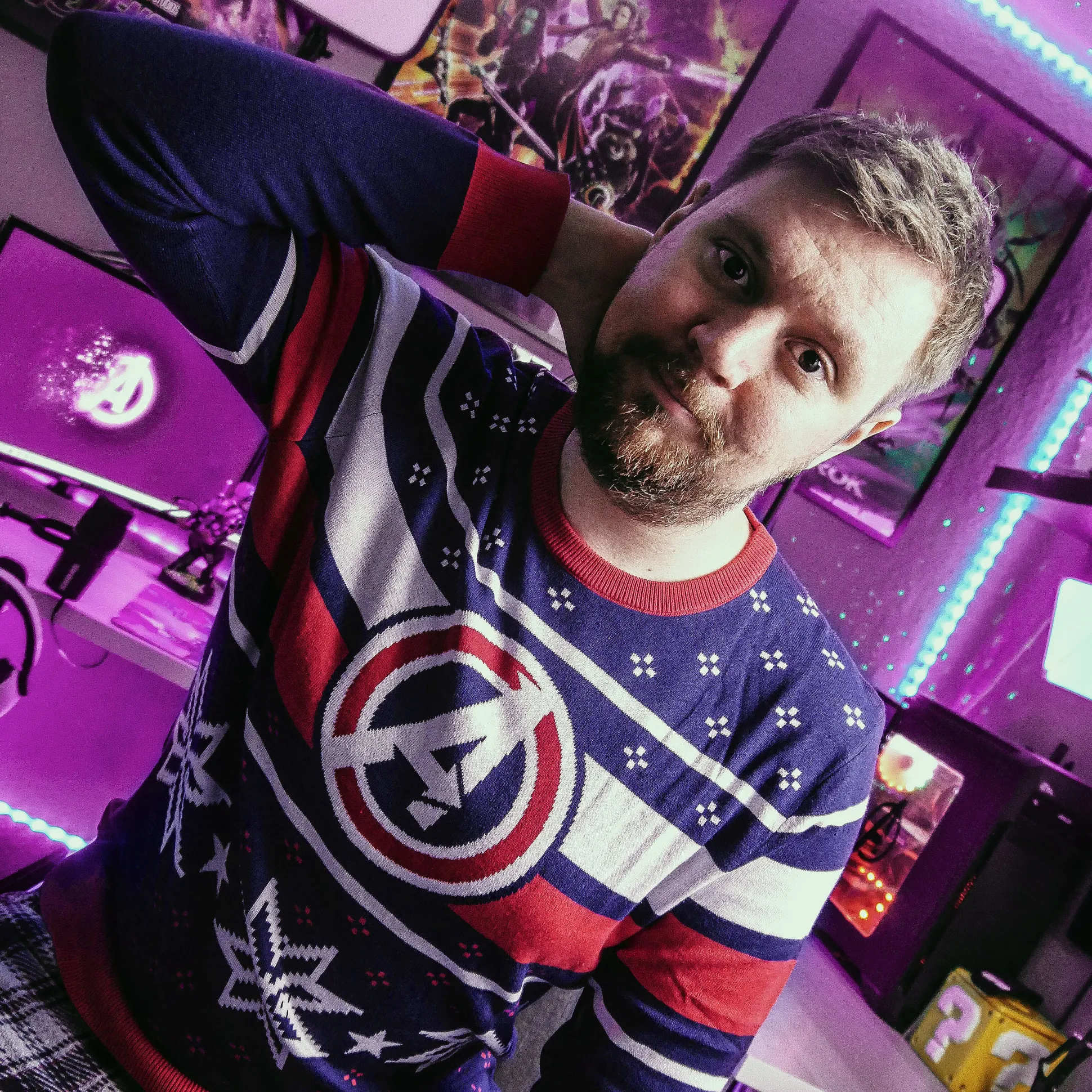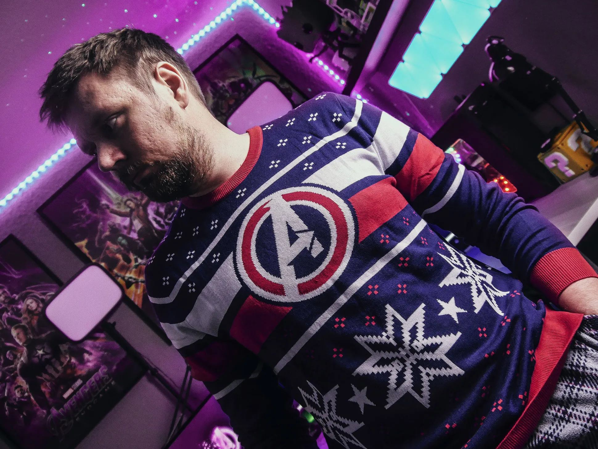 Avengers, assemble — onder de kerstboom! Deze officieel gelicentieerde Marvel gebreide trui / foute kersttrui zet het iconische Avengers-logo op je borst en de lettering op je rug, omlijst door een Noors patroon aan voor- én achterkant. Contrastkleurige, stevige boorden en een klassieke ronde hals houden alles op z’n plek — of je nu koekjes bewaakt of cadeaus verdedigt. Knus, warm en klaar voor elke kerstmissie in blauw, rood en wit. Perfect voor het kantoorfeest, een filmmarathon of het jaarlijkse debat over wie de sterkste Avenger is. Geen superkrachten nodig — alleen goede smaak.