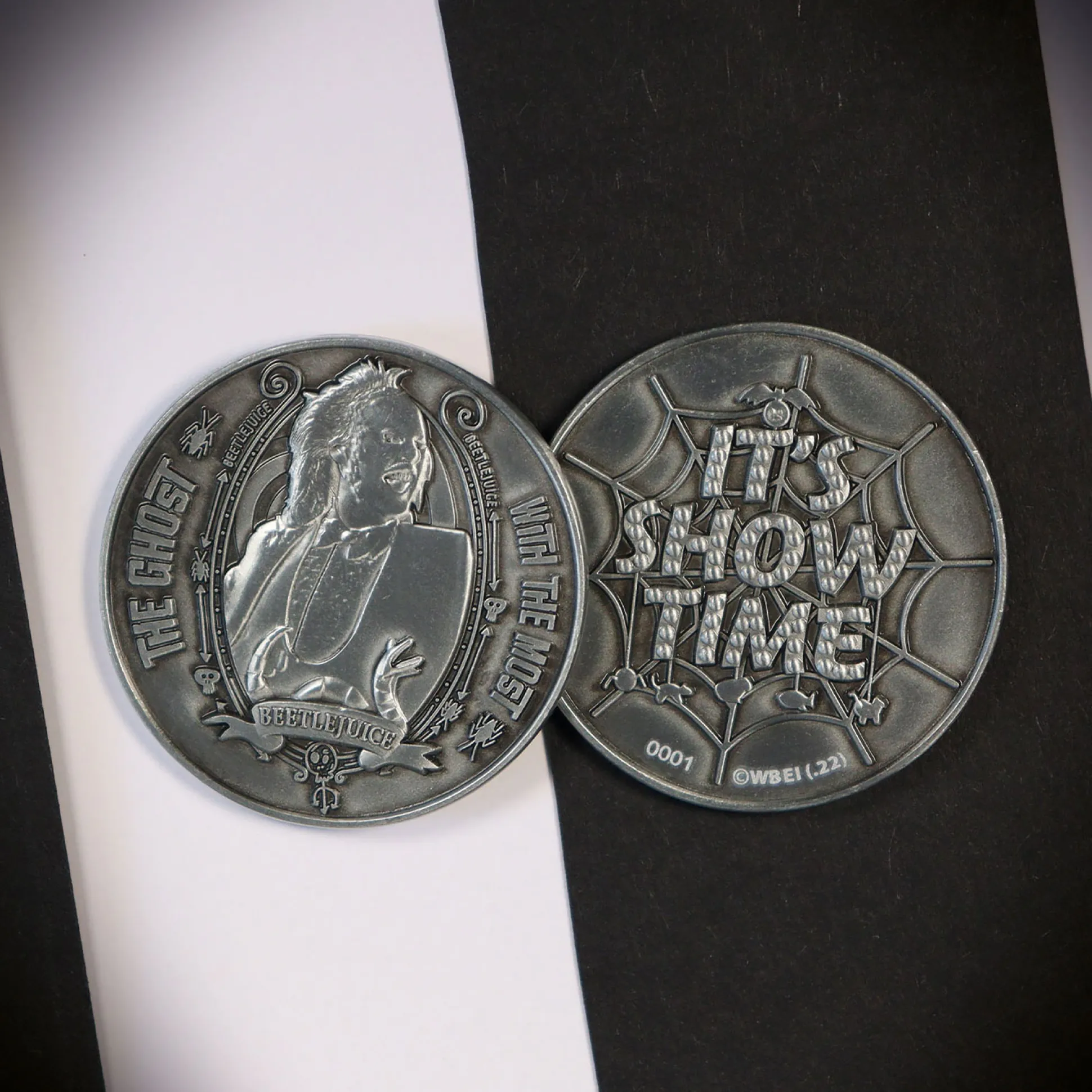 - dubbelzijdig gegraveerd met Beetlejuice en ‘It’s Show Time’