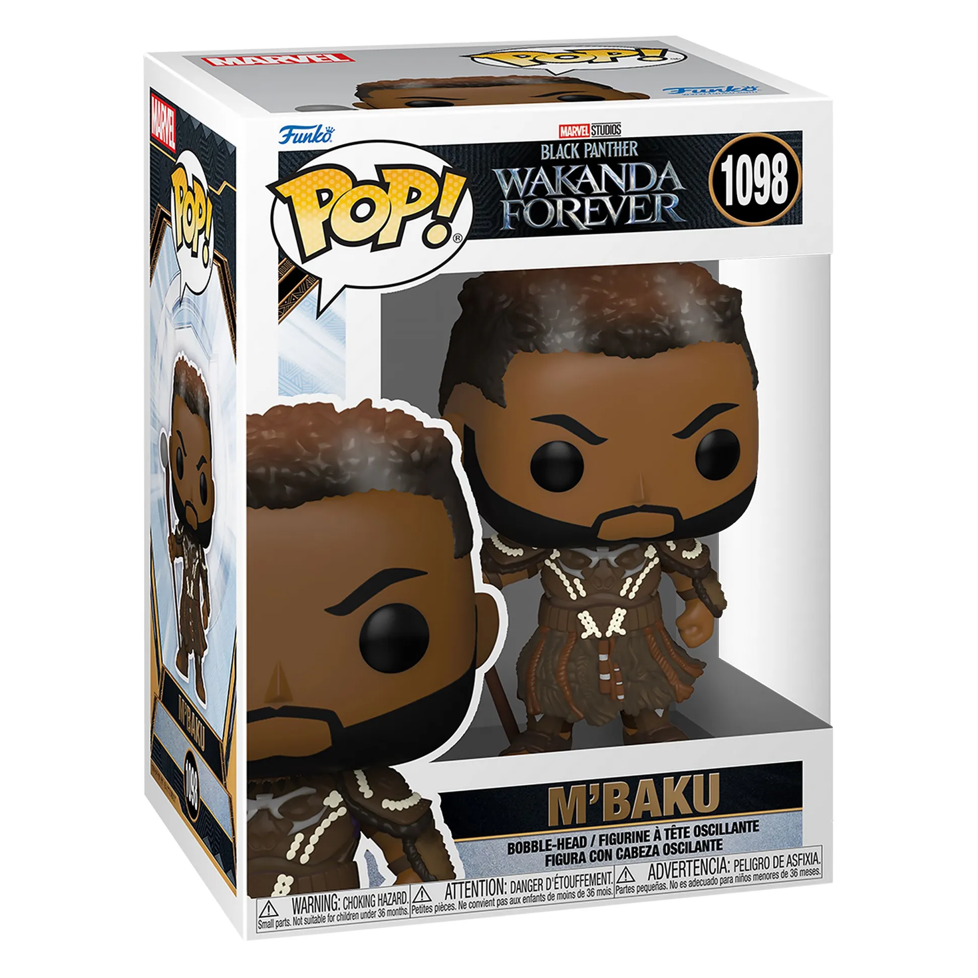 De 10 cm hoge replica van M’Baku uit Black Panther is gemaakt van plastic, heeft een bobblehead en is verder ‘uit één stuk’. Het wordt geleverd in een ontworpen vensterdoos en kan daarom direct worden weggegeven.