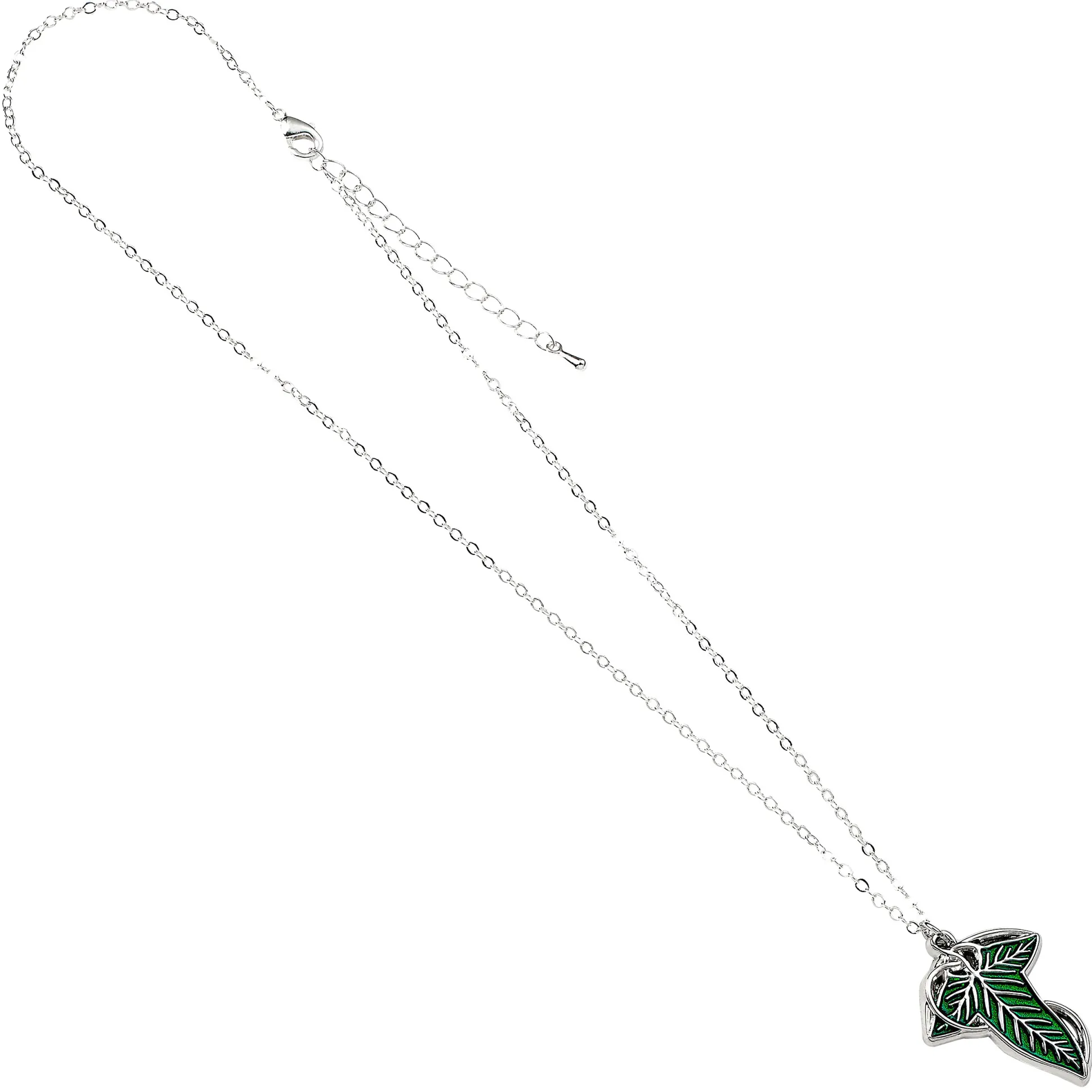 Van mantel naar sleutelbeen: de iconische elfen bladbroche uit Lothlórien, nu als ketting. Officieel gelicentieerd, zilver en groen glanzend en klaar om elke outfit een vleugje Midden-aarde te geven.