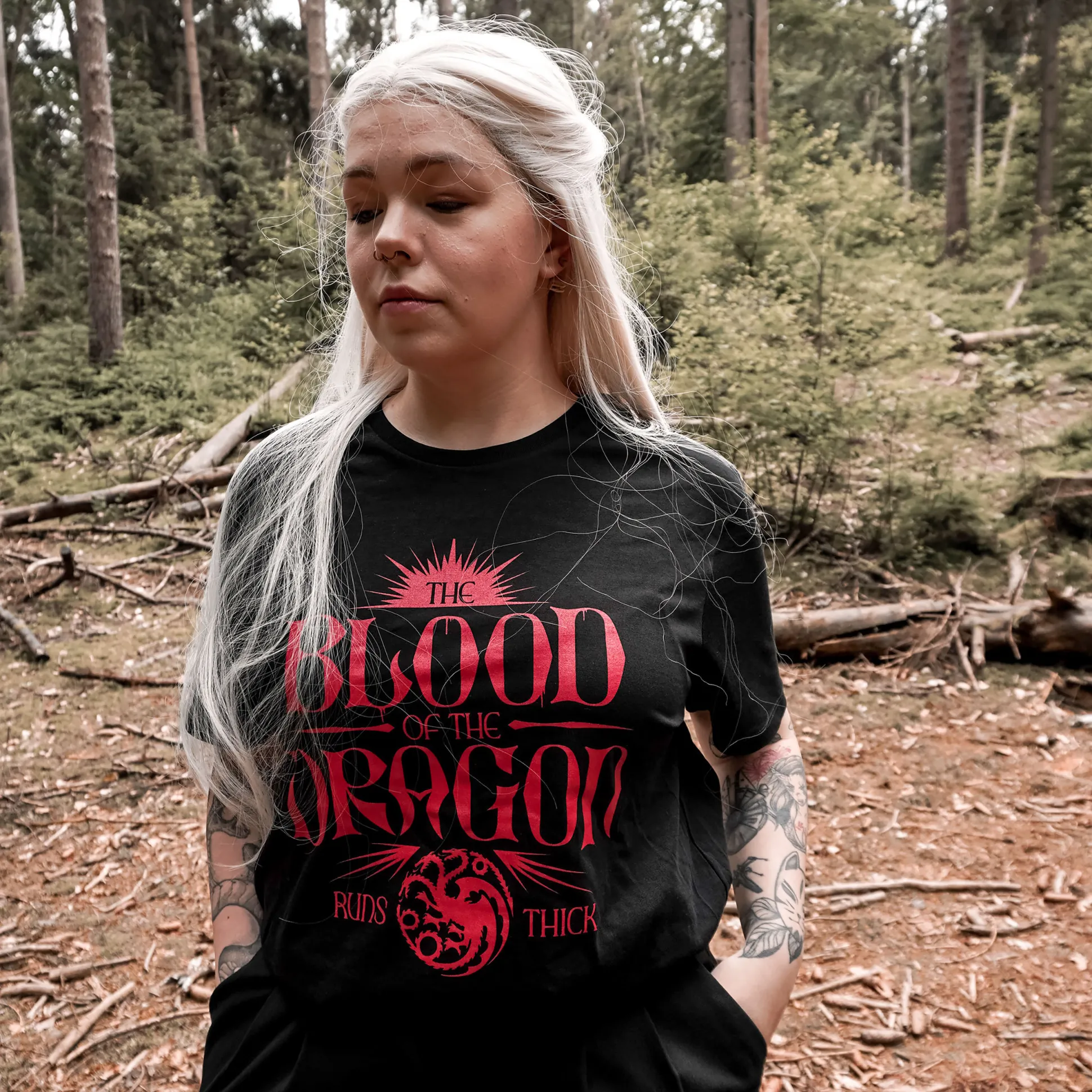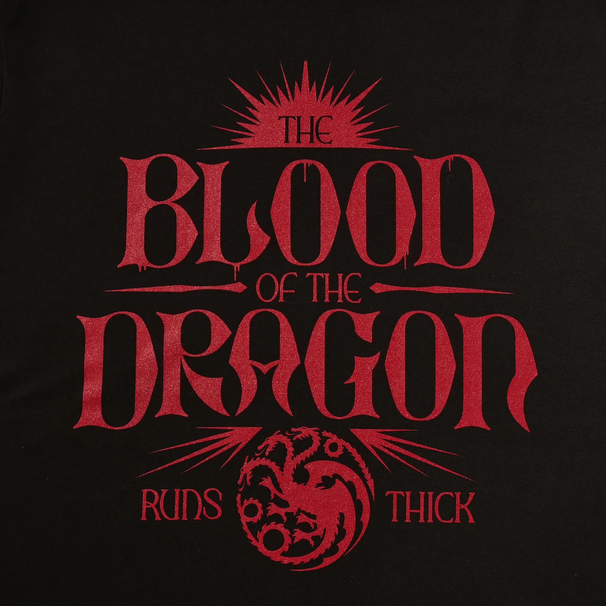 Ontketen je innerlijke Targaryen: met het Blood of the Dragon T-shirt van House of the Dragon draag je trots drakenbloed op je borst. De grote frontprint combineert het Targaryen-wapen met stevige lettering — inclusief “The Blood of the Dragon”. Officieel gelicenseerd, natuurlijk.