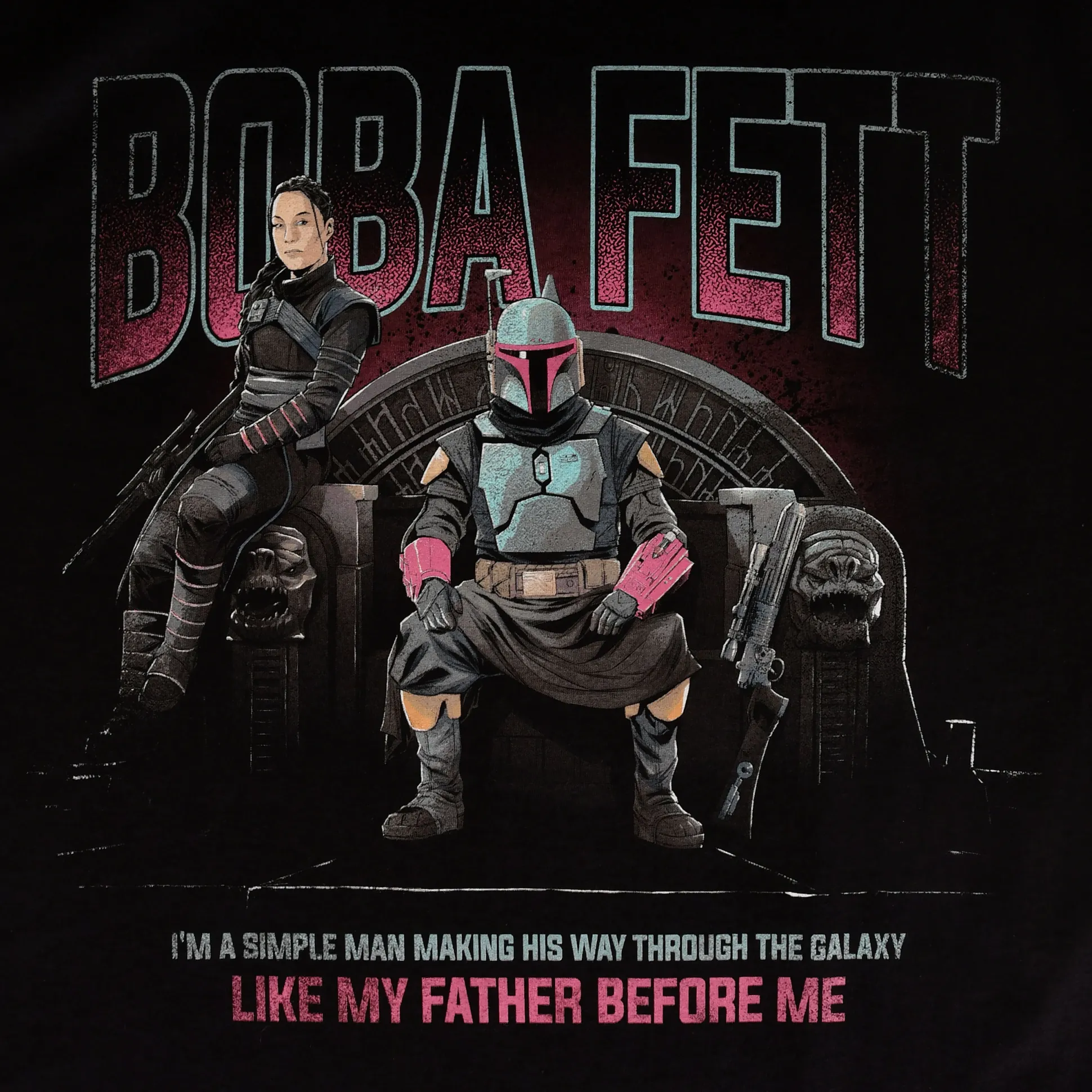 Boba heeft het voor het zeggen — en eist de troon op. Met dit officieel gelicentieerde Star Wars T‑shirt haal je de meest iconische premiejager pontificaal in beeld: grote Boba Fett‑opdruk aan de voorkant uit The Mandalorian, klaar om jouw troon (of in elk geval de bank) op te eisen.
