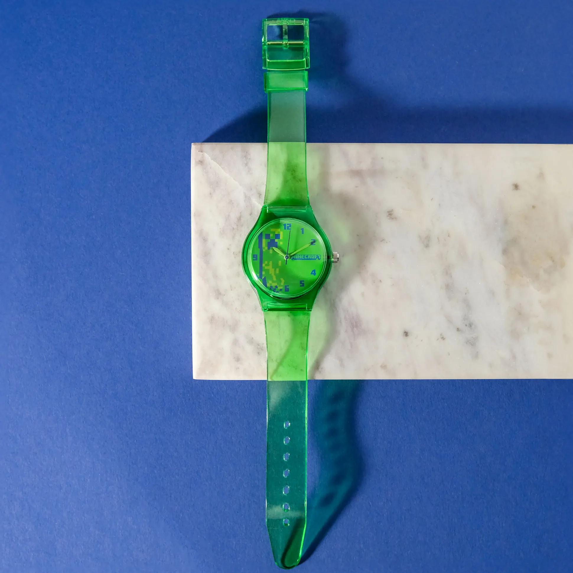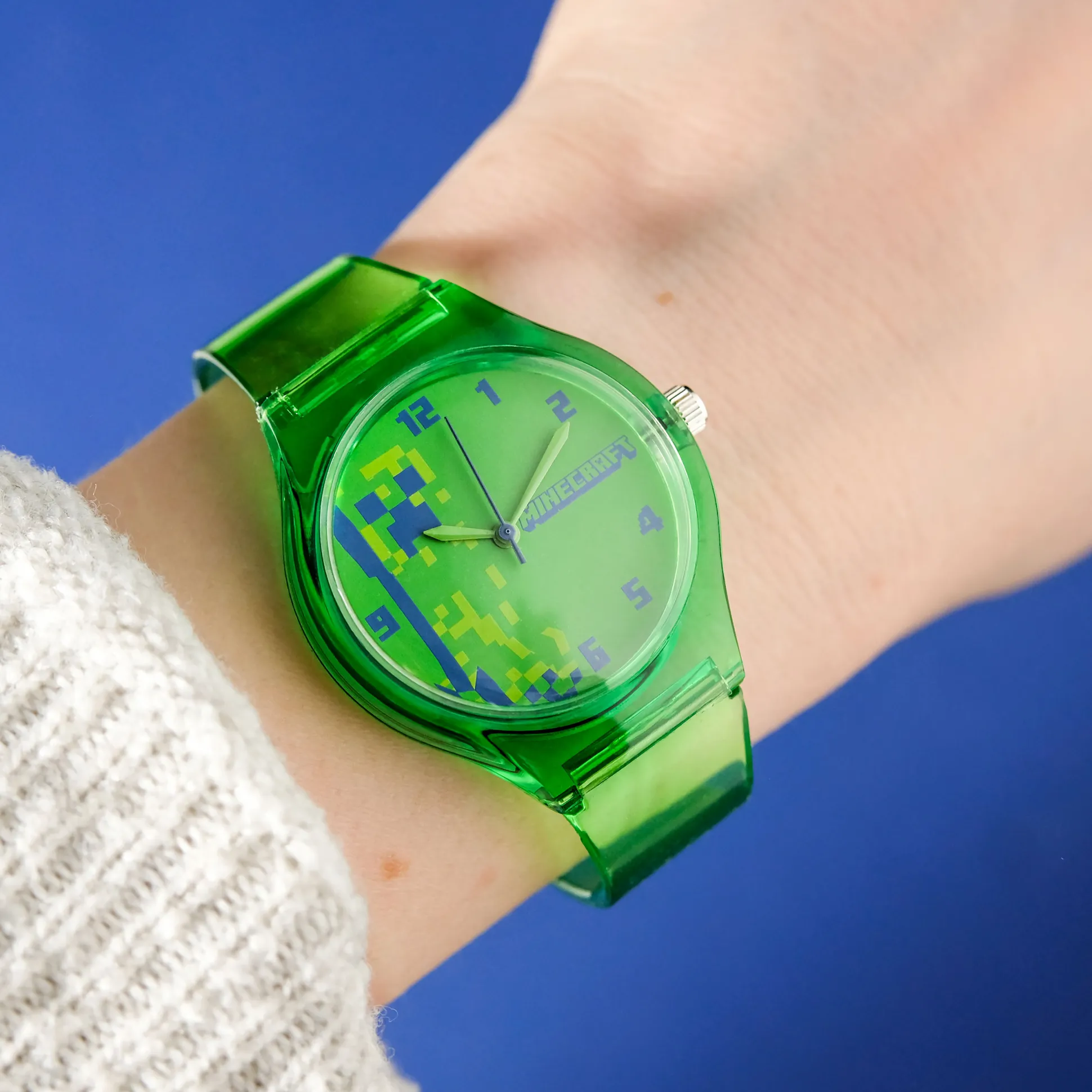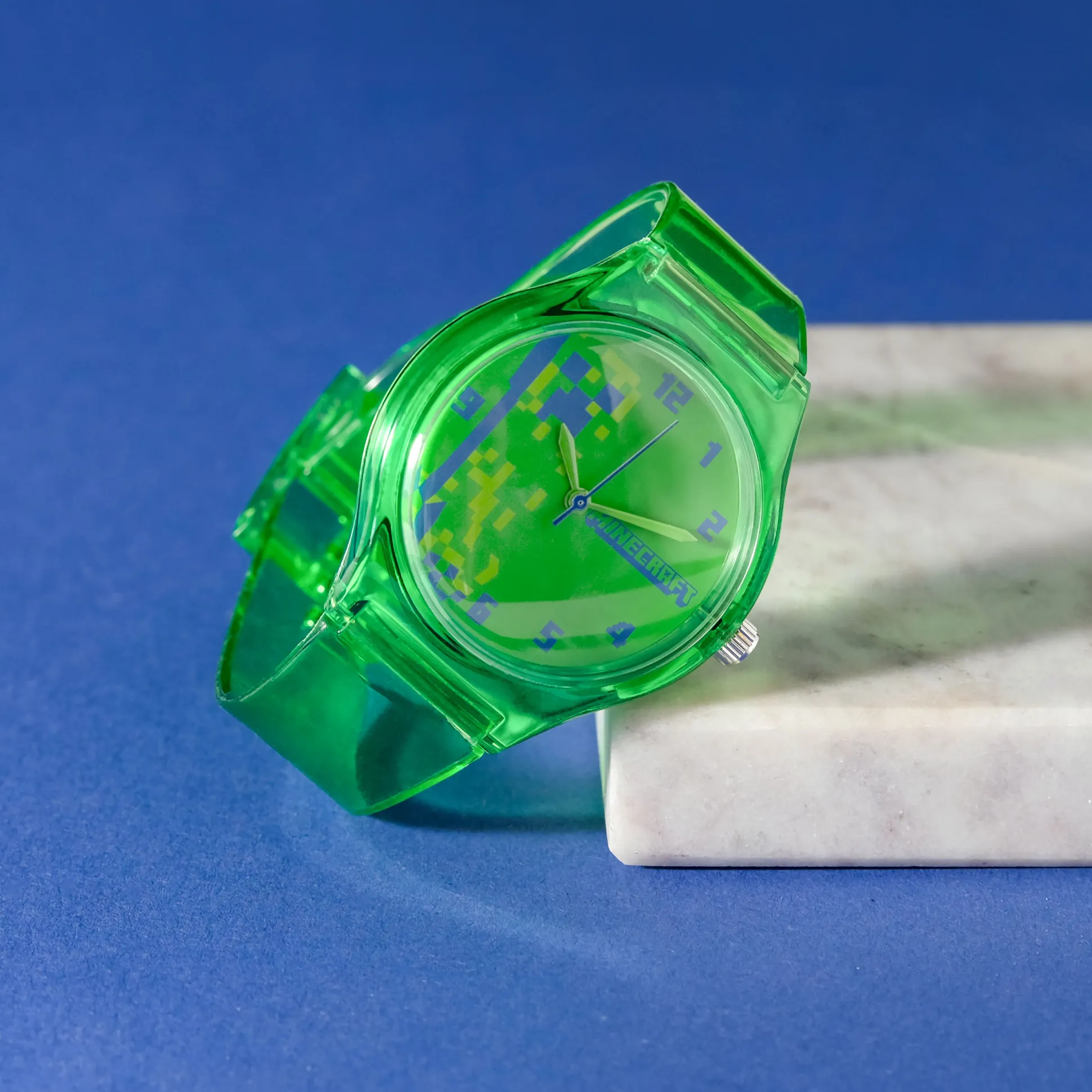 Tick, tick, BOOM? Geen paniek, deze Creeper explodeert alleen in stijl. Het officieel gelicentieerd Minecraft-horloge brengt de iconische pixel-mob zo naar je pols – met analoge wijzerplaat, Creeper-motief en logo. De groene band (1,7 cm breed, 22 cm lang) zit comfortabel, en de kast (Ø 3,6 cm) heeft precies het juiste formaat voor alledag, school of je volgende raid. Werkt op batterij, zodat je altijd weet wanneer het tijd is om te minen, te craften of even AFK te gaan. Perfect voor iedereen die zijn liefde voor Minecraft subtiel maar onmiskenbaar wil tonen. En ja: hij sist niet. Beloofd.