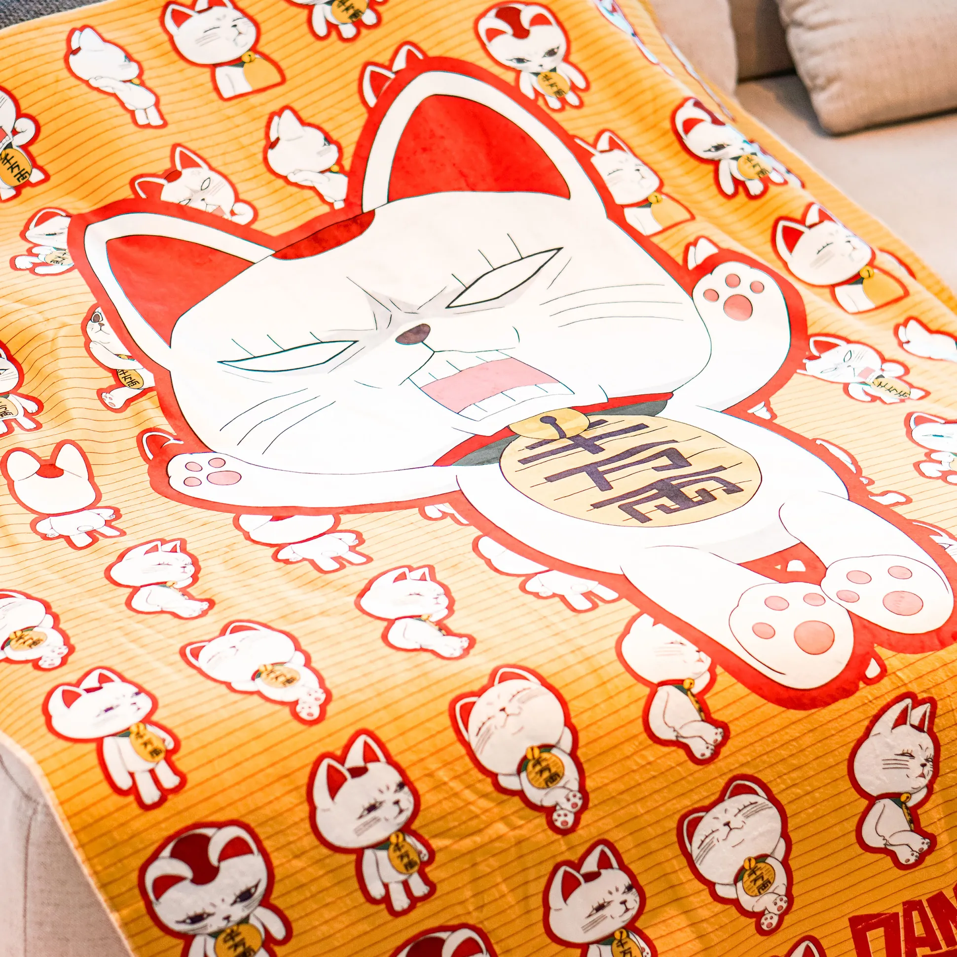 Turbo Granny heeft even genoeg van nachtelijke gevechten met aliens en geesten en doet nu wat wij allemaal willen: relaxen. Met deze officieel gelicentieerde Dandadan knuffeldeken haal je de legendarische Turbo Granny en de gelukskat rechtstreeks naar je bank.