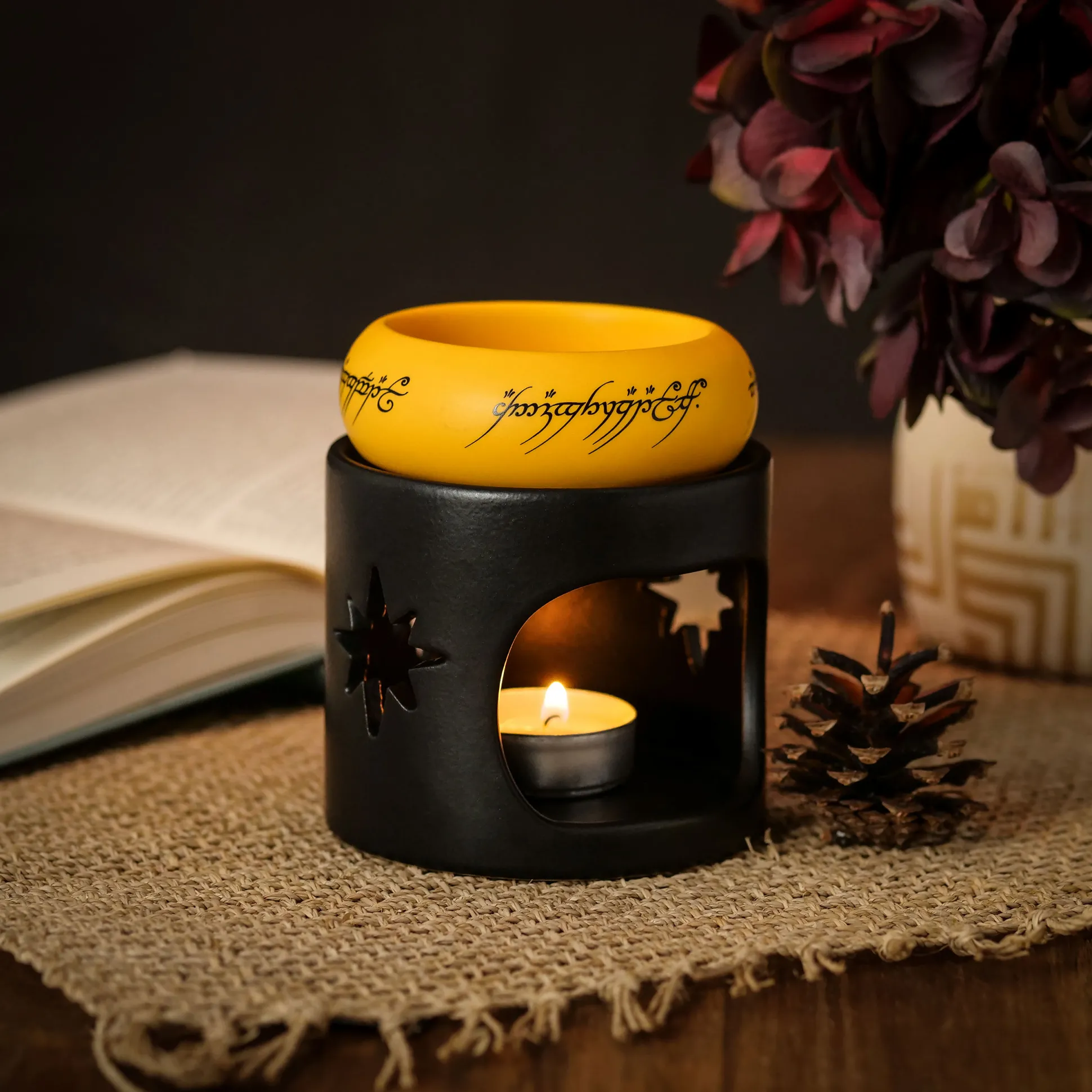 Eén ring om ze allemaal te parfumeren. Met deze geurlamp haal je Midden-aarde in huis – inclusief de inscriptie van de Ene Ring op het bovendeel. Beneden brandt een theelichtje, boven giet je je favoriete geurolie in het schaaltje: ineens wordt de Doemberg een wellnessplek. Officieel gelicentieerd, compact en stijlvol in zwart-geel – perfect voor je plank, bureau of hobbithol.