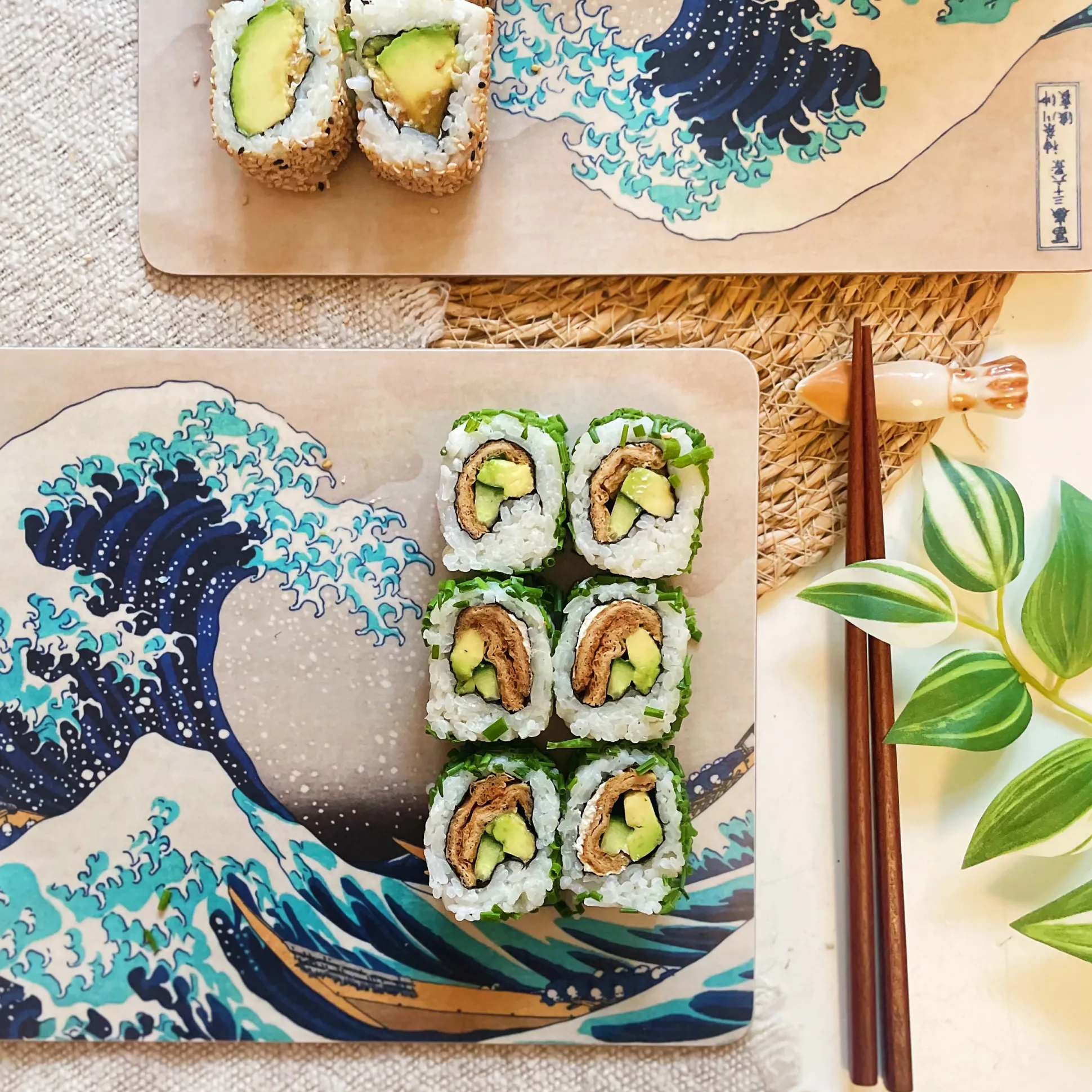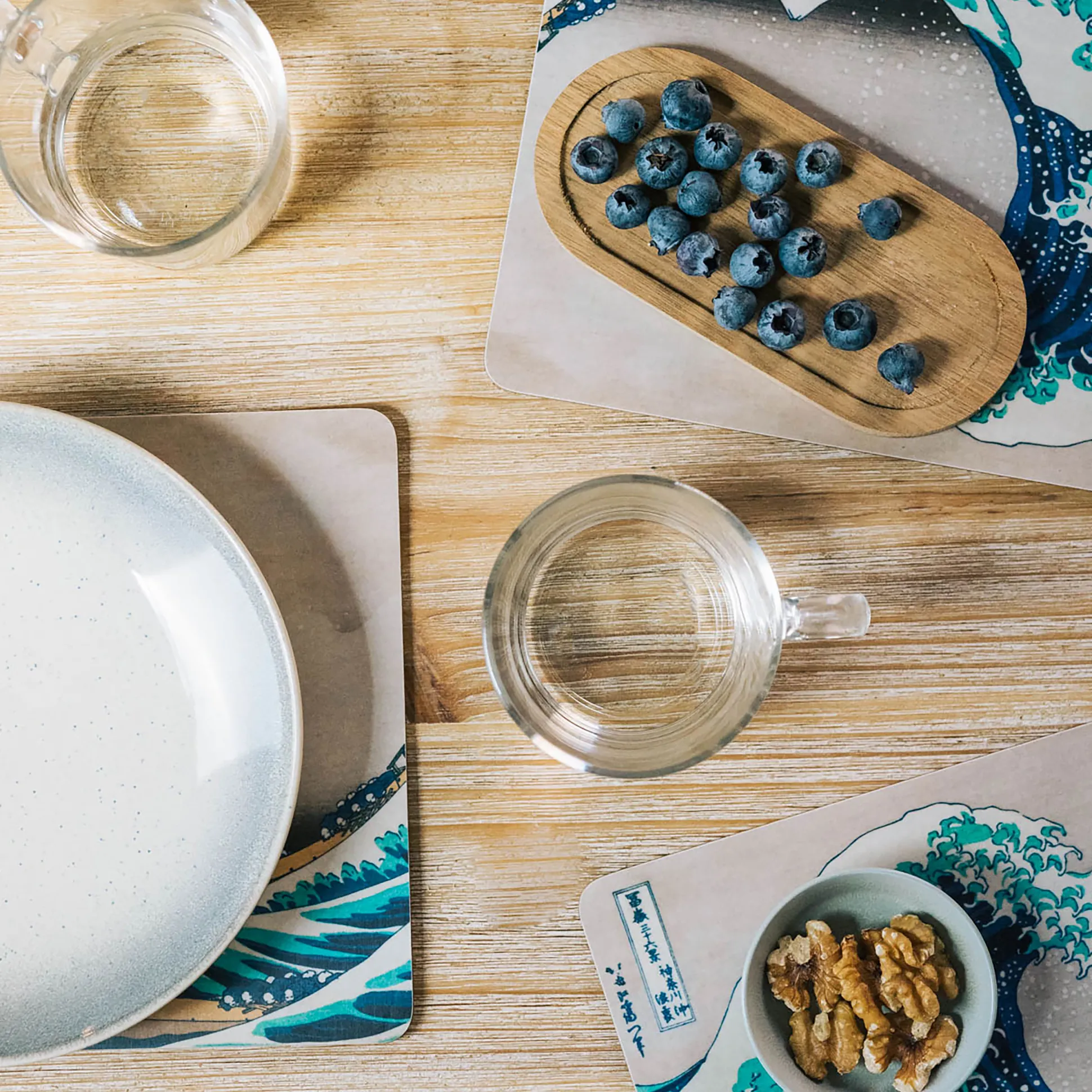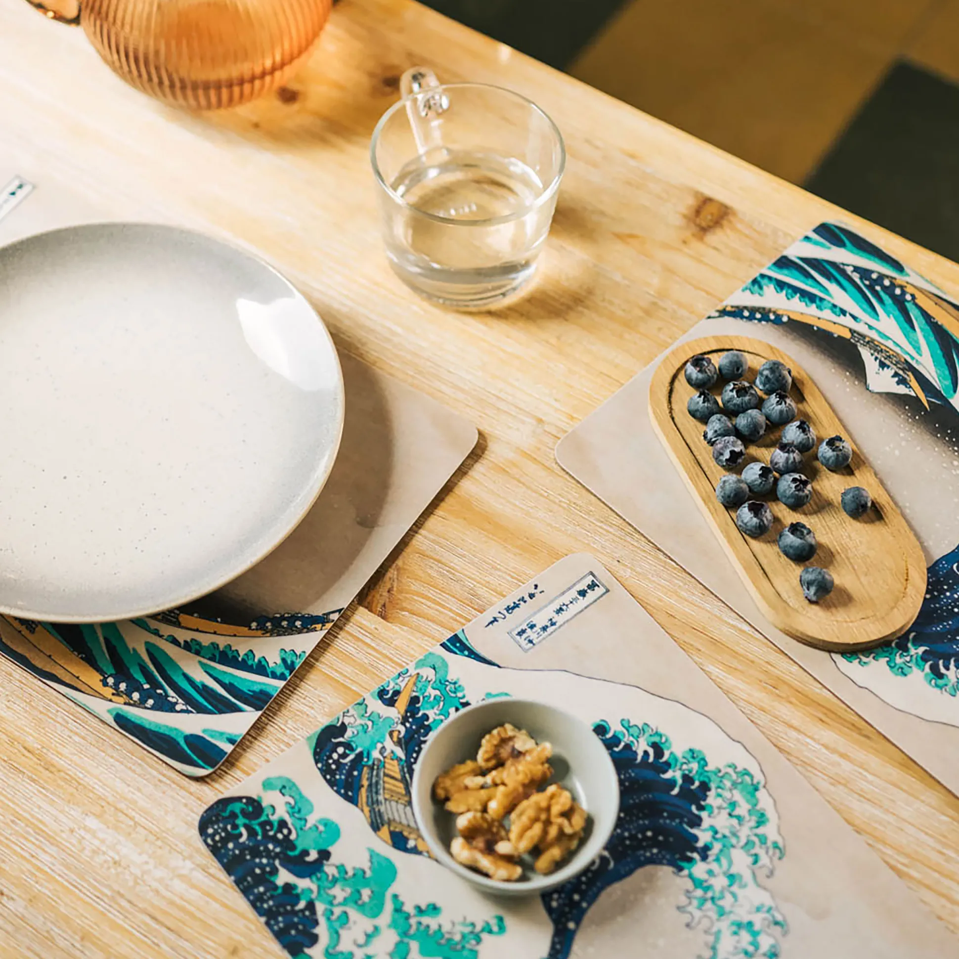 Begin je dag met een meesterlijke golf. Deze officieel gelicentieerde set van 4 ontbijtplankjes toont De grote golf bij Kanagawa van Katsushika Hokusai en brengt museum vibes zo naar je tafel. Elk plankje heeft een kurken antisliponderkant — croissants, toast en sushi glijden niet weg. Slank, stevig en praktisch: 28,2 x 0,3 x 20,5 cm per plankje. Makkelijk te onderhouden: gewoon afnemen; niet geschikt voor vaatwasser of magnetron. Voor iedereen die van kunst houdt — en nog meer van ontbijt.