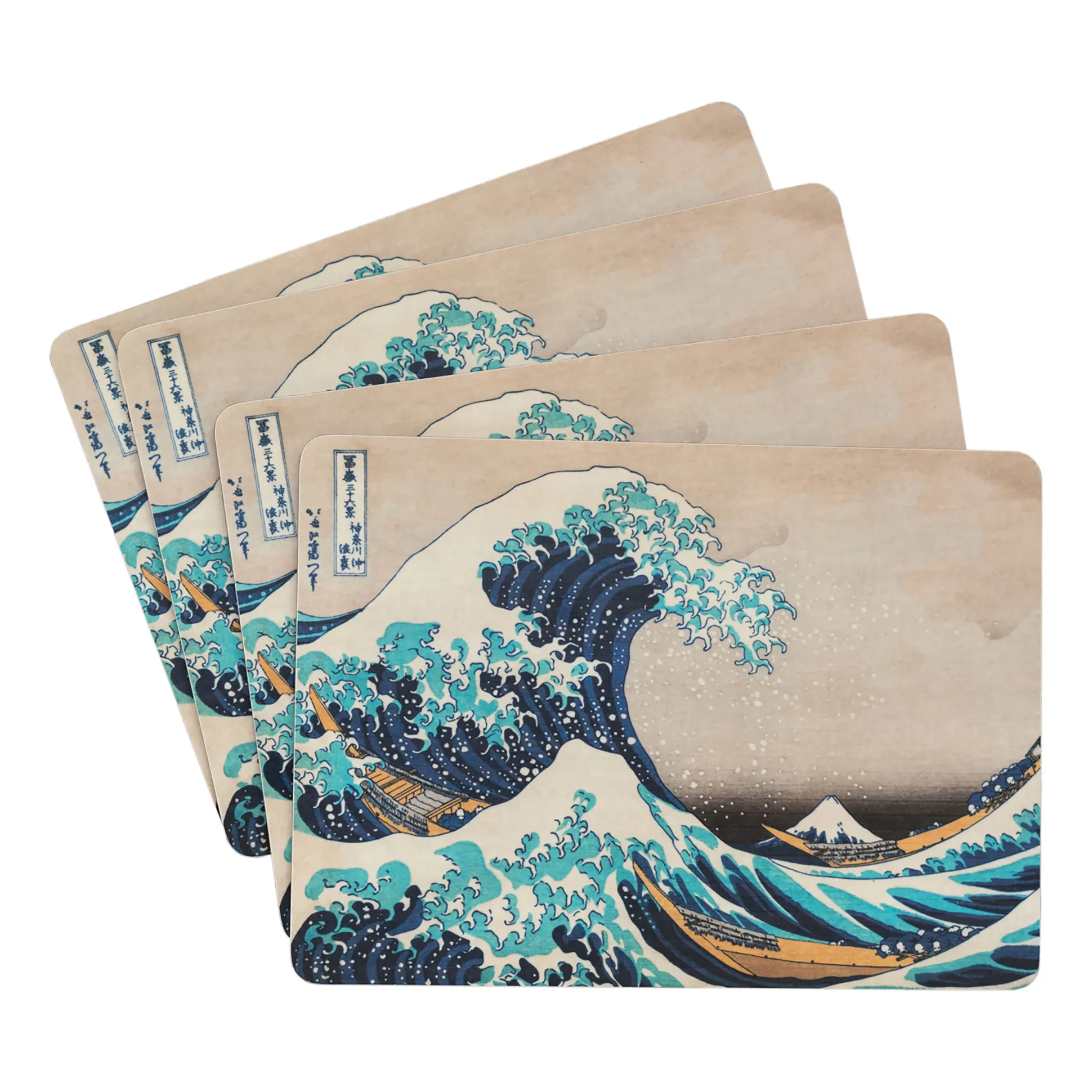 - 4-delige set met motief van Katsushika Hokusai ‘De grote golf bij Kanagawa’
