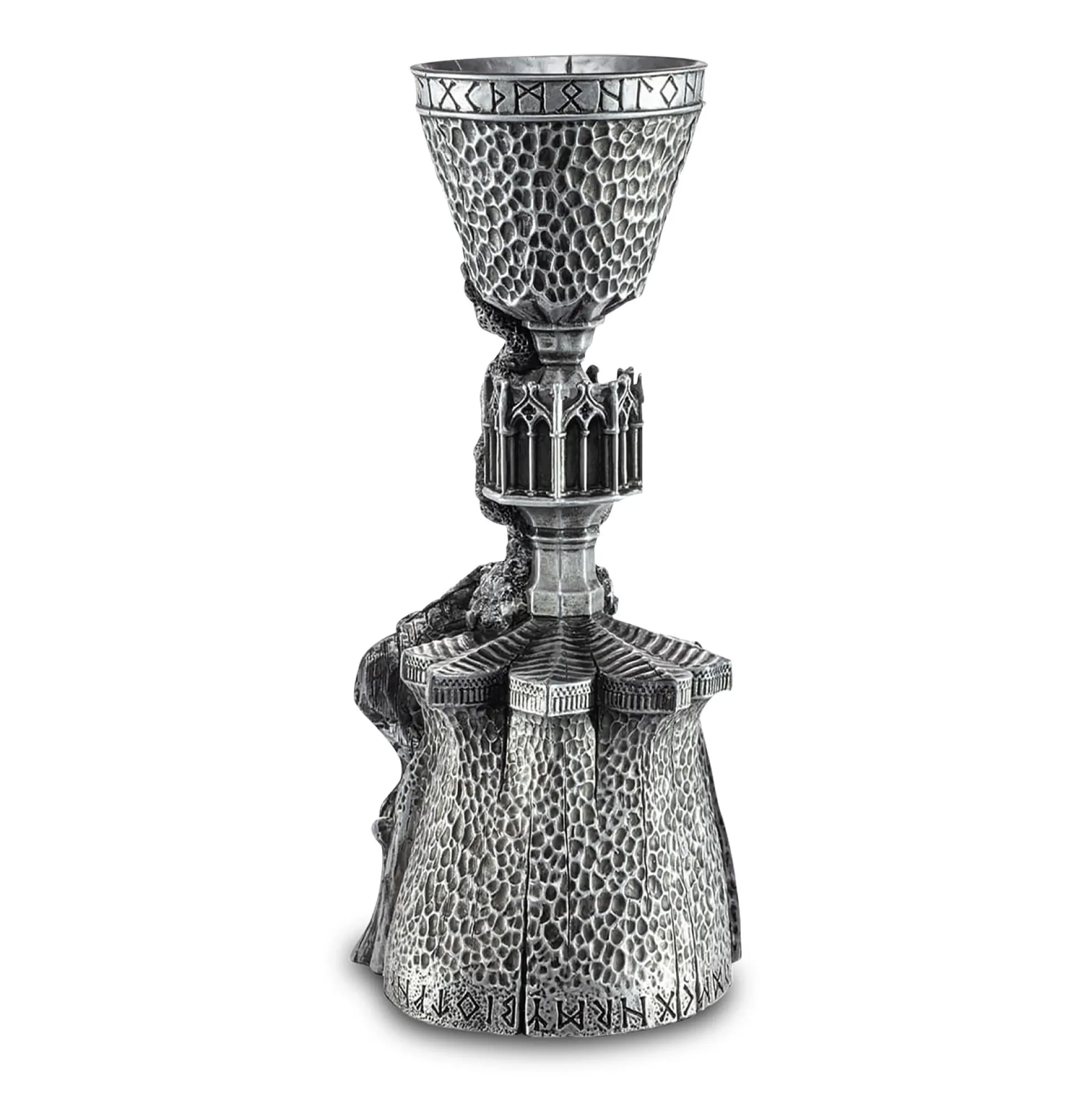 Klaar om je naam in de Vuurbeker te gooien? Geen paniek – deze kiest hooguit een plekje op je plank. Als officieel gelicentieerde Harry Potter-filmrepliek is hij rijk aan details, versierd met ornamenten en brengt hij meteen Toverschool Toernooi-sfeer in huis. Belangrijk: decoratieobject, geen drinkbeker – dus graag geen pompoensap, boterbier of Veelsaftdrank. In elegant zilver, ca. 7,5 x 19 x 8 cm: perfect voor de vitrinekast, je bureau of de ereplek die een magisch relikwie verdient. Voor iedereen die Zweinstein liever thuis brengt dan op de uilenpost wacht.