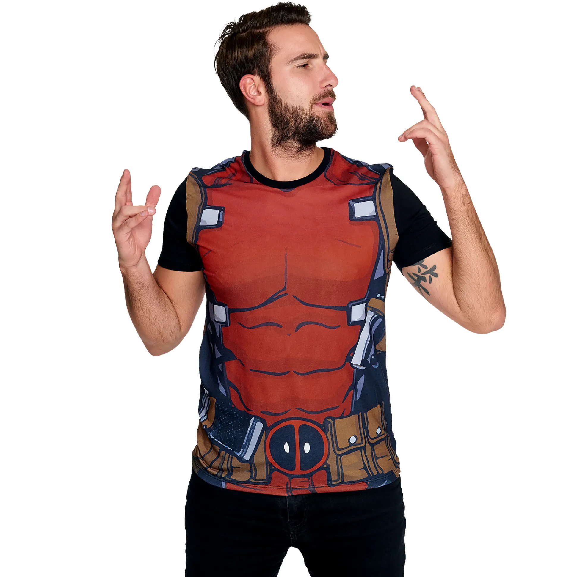 - in Deadpool outfit stijl