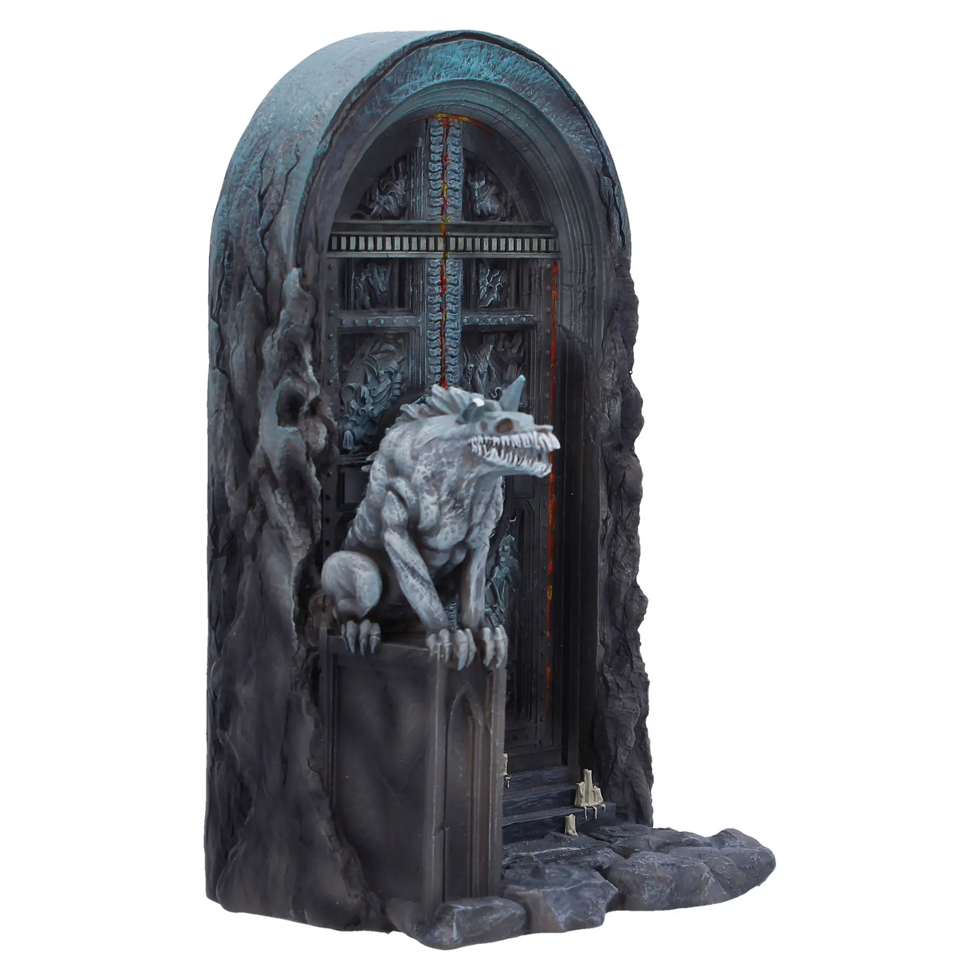 Met een hoogte van 19,5 cm maakt de boekensteun indruk zonder je plank te domineren. Hij is perfect als decoratieve houder voor boeken, artbooks, gameguides of collector’s editions en tegelijkertijd een echt verzamelobject voor elke Diablo-fan. Elk stuk is rijk gedetailleerd en met de hand beschilderd, zodat de duistere structuren, scheuren en versieringen echt tot leven komen – bijna alsof de Hel zelf achter je romans schuilgaat.