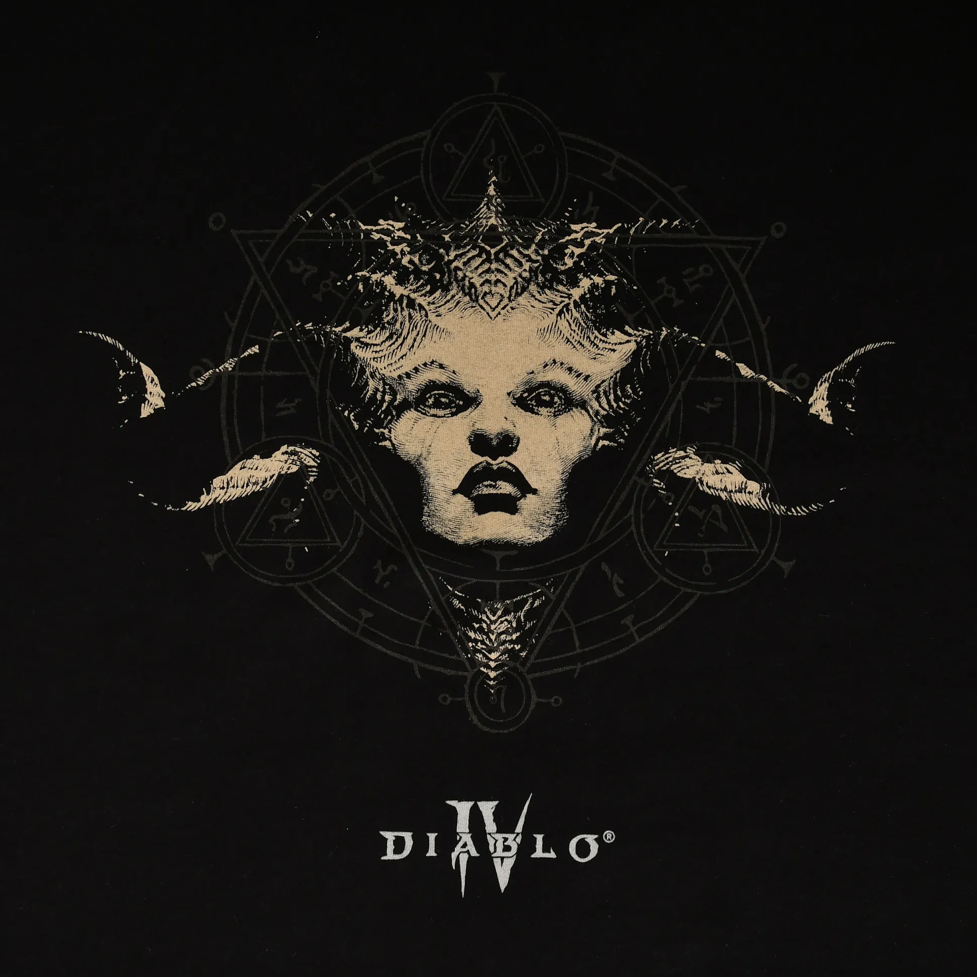 Voor iedereen die Sanctuary niet alleen wil farmen maar ook wil dragen: met dit officieel gelicentieerde Diablo IV T-shirt haal je de Queen of the Damned rechtstreeks op je borst. De grootformaat frontprint laat Lilith schitteren in al haar duistere glorie – perfect voor dungeons, boss runs en je volgende uitstap naar de echte wereld.