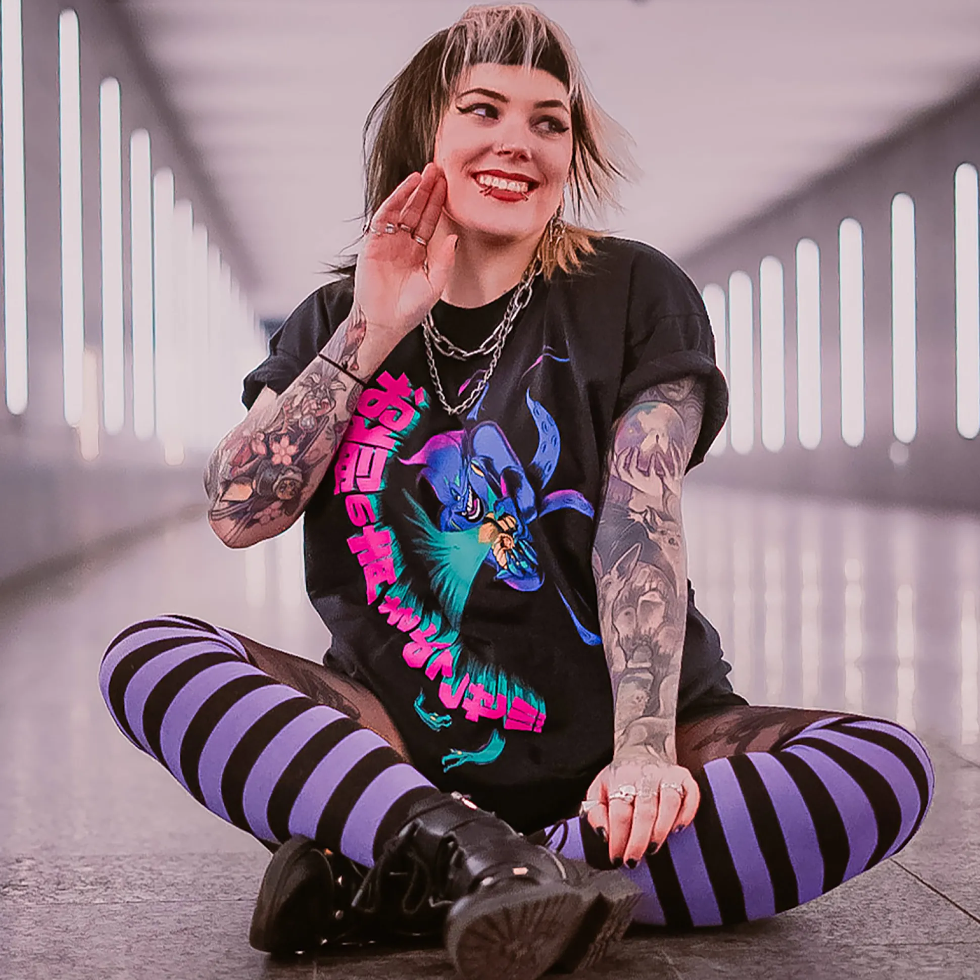 Ursula roept — en jouw kledingkast neemt op. Dit officieel gelicentieerde Disney T-shirt zet de zeeheks uit De Kleine Zeemeermin in het middelpunt met een grote frontprint in Japanse stijl. Zwart, rechte pasvorm en ronde hals: makkelijk te combineren, makkelijk te dragen — perfect voor je villain-era, conventies of gewoon om aan land wat tentakelenergie te verspreiden. Kortom: De Kleine Zeemeermin ontmoet streetwear. Trek ’m aan en laat de zeeheks voor je spreken.