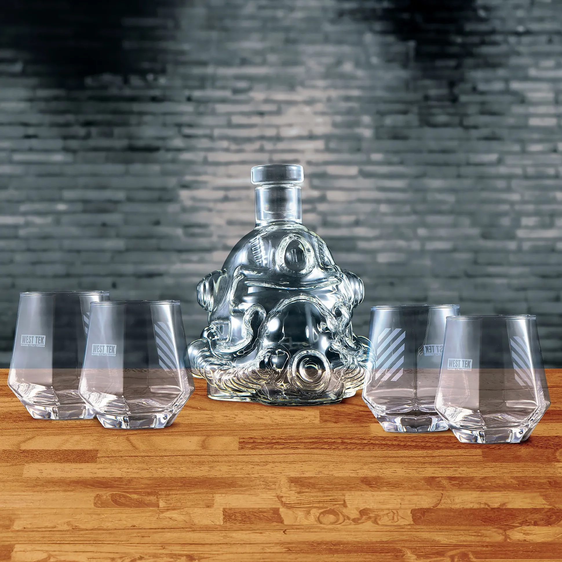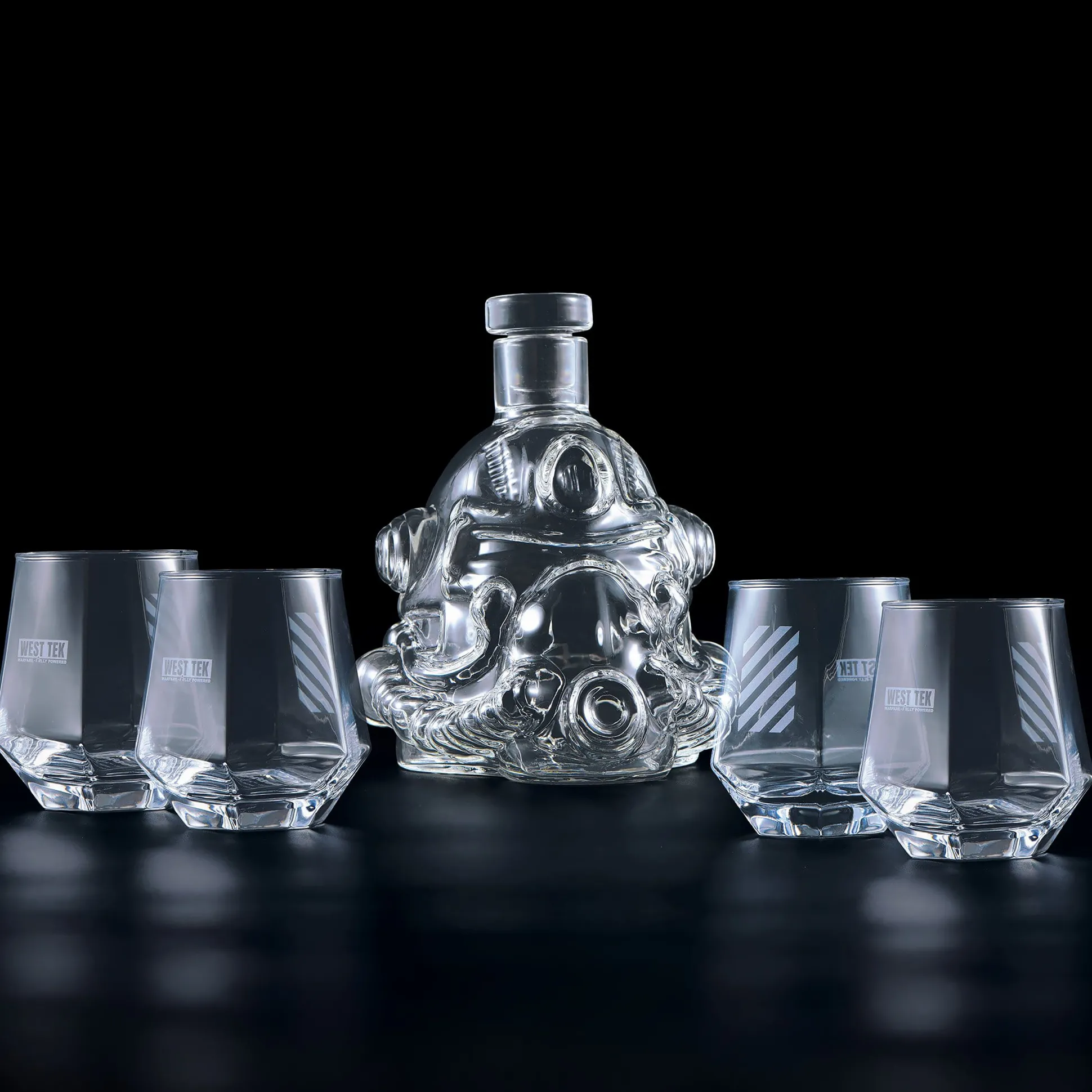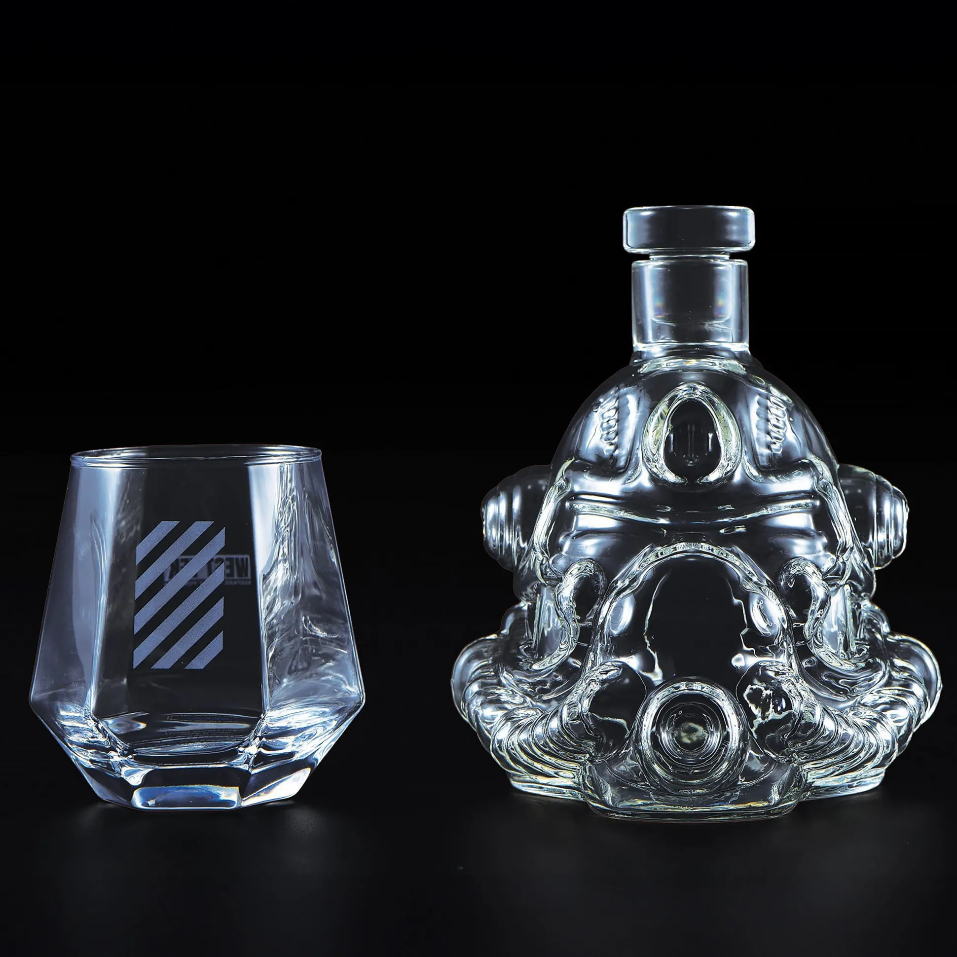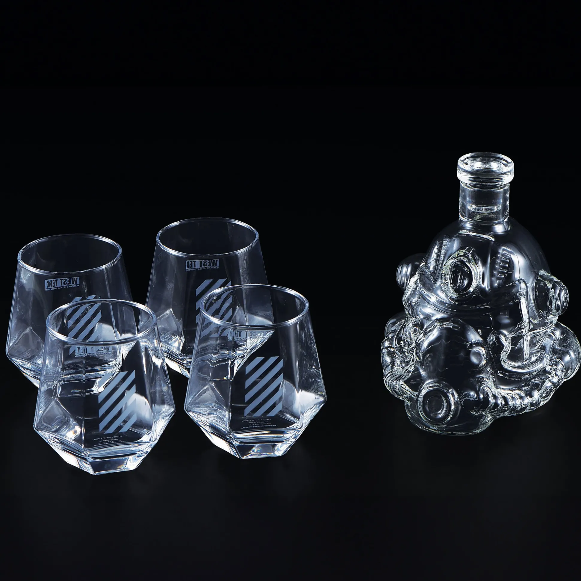 De set bevat een elegante karaf met stop en vier stevige whiskyglazen met versterkte bodem. Perfect om te proosten met je eigen kleine Brotherhood of Steel – of voor een rustige avond veilig in je Vault.