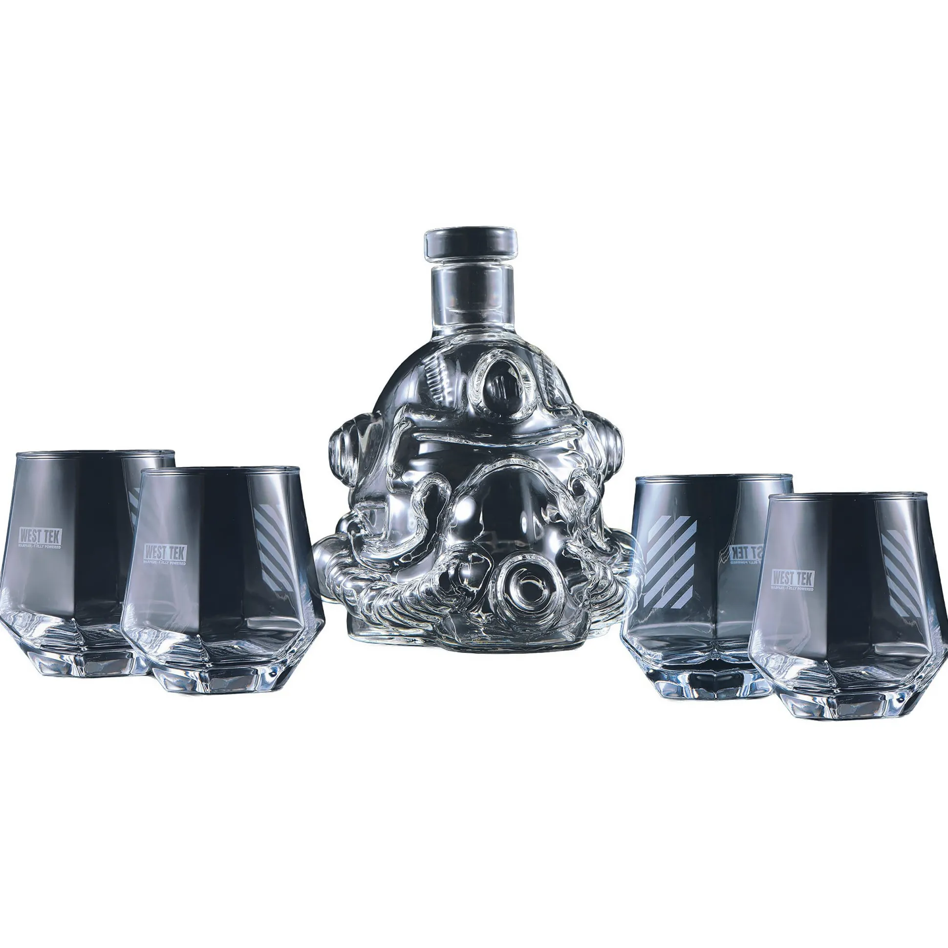 Met 750 ml inhoud in de karaf en 250 ml per glas heb je meer dan genoeg ruimte voor Nuka-Cola, whisky, wodka of welke drank jij ook als jouw persoonlijke healing of damage-reduction potion ziet. Dankzij de decoratieve doos is deze set ook ideaal als cadeau voor Fallout-fans – of als beloning voor jezelf omdat je het Commonwealth wéér hebt gered.