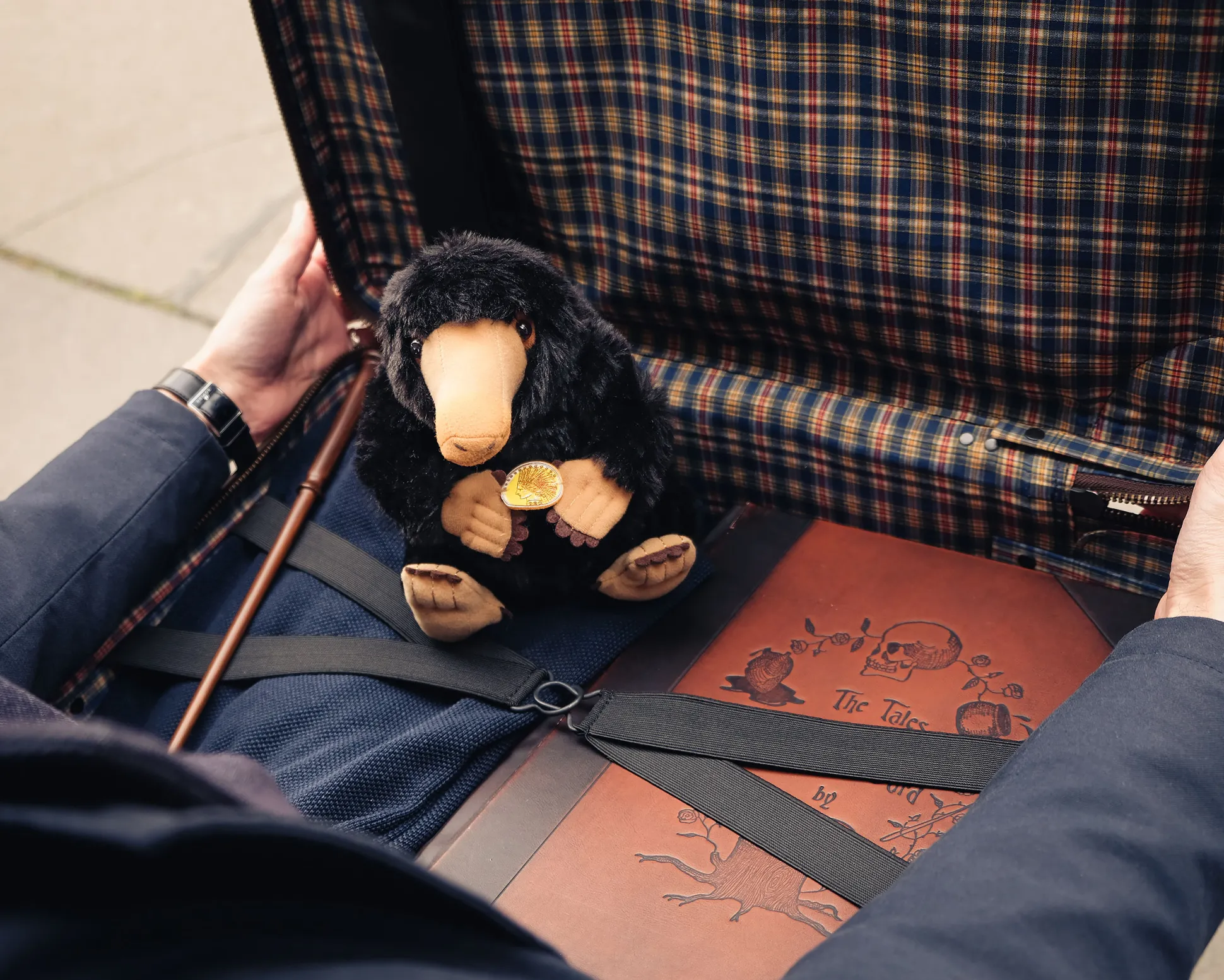Deze Niffler‑pluche daarentegen is een volkomen onschuldige speelkameraad die dankzij de vastgenaaide schat je kostbaarheden thuis met rust laat en genoegen neemt met knuffels. De perfecte metgezel voor elke fan van de magische wereld rond Newt Scamander en Harry Potter.