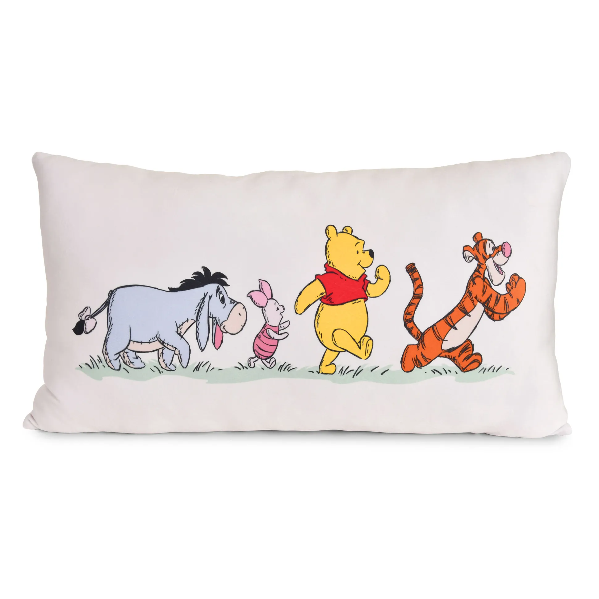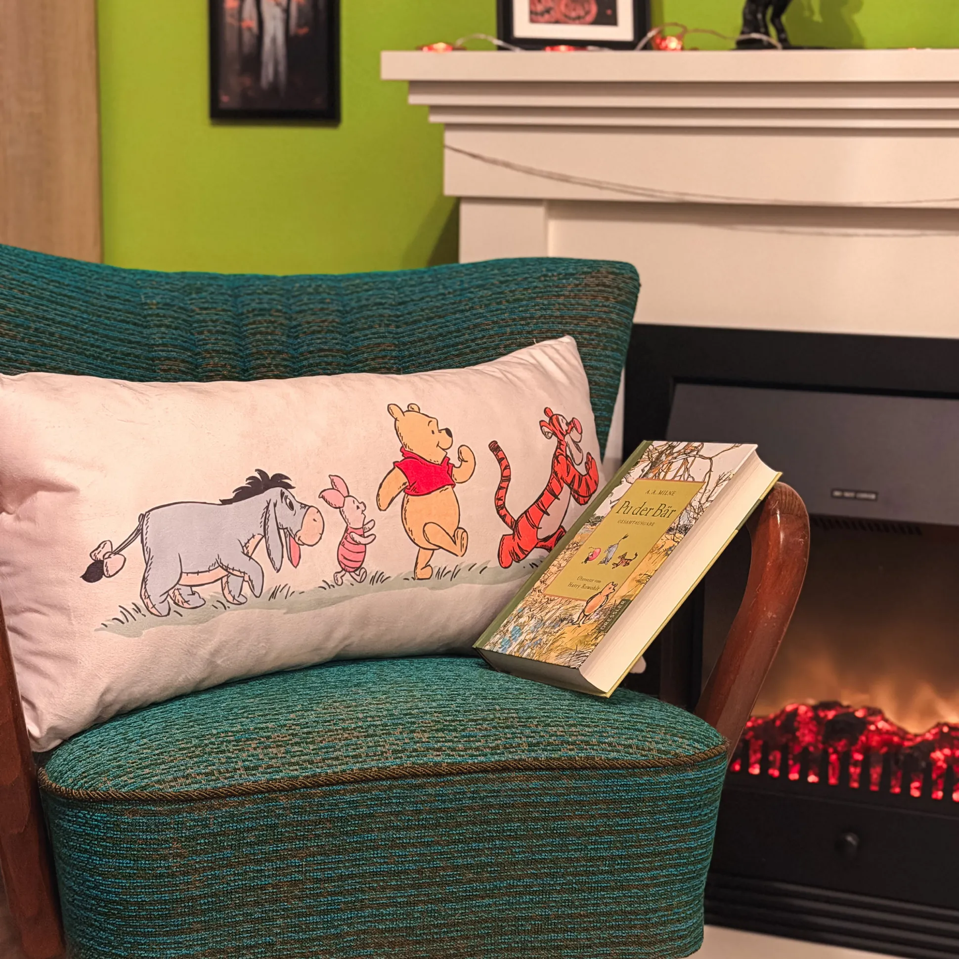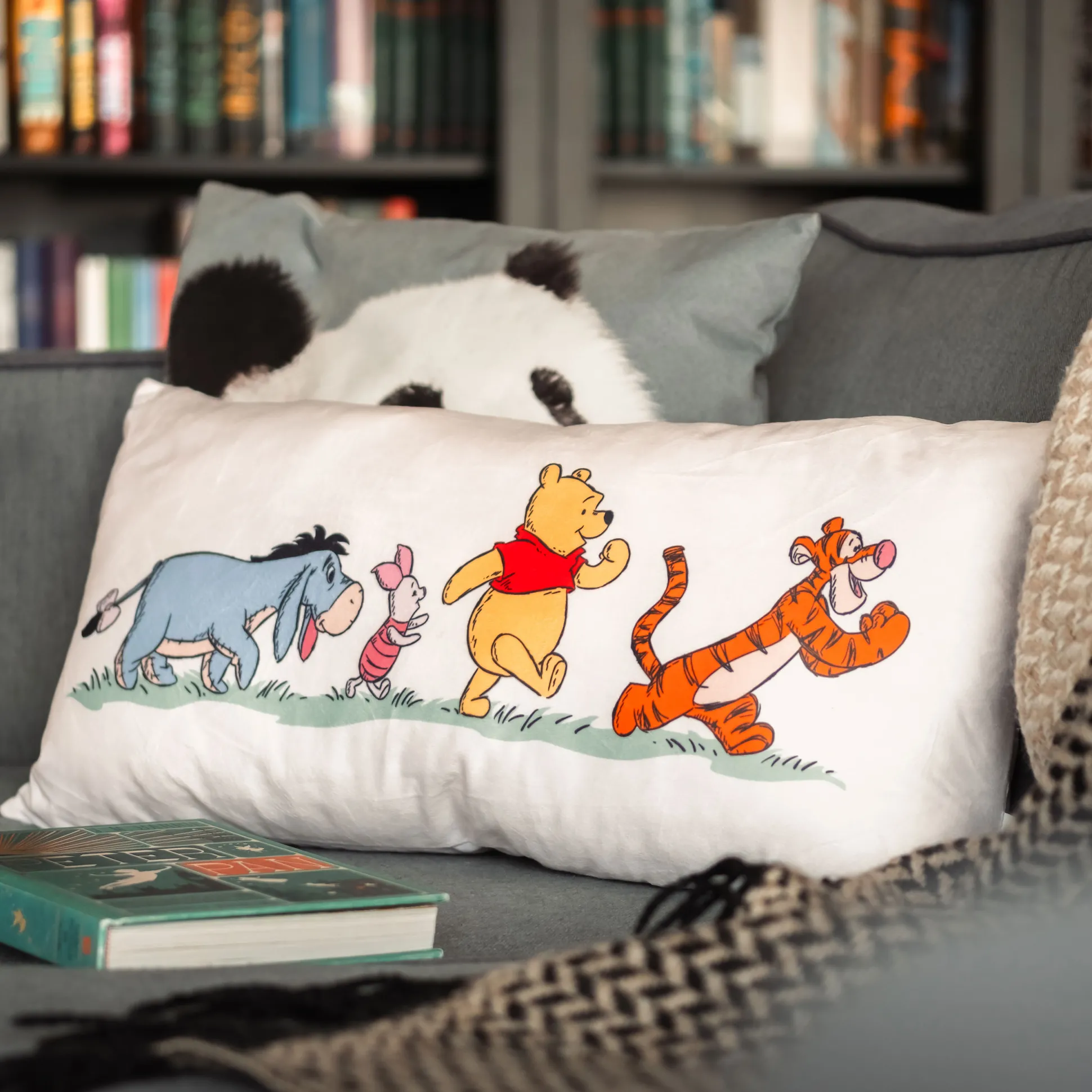 Vier vrienden, één kussen – jouw bank heeft er nieuwe maatjes bij. Op de voorkant lachen Winnie de Poeh, Iejoor, Knorretje en Teigetje je toe; op de achterkant zit een geborduurd logo als bewijs van echtheid. Officieel gelicentieerd: Disney’s Winnie de Poeh, superknuffelig en met 56 x 30 cm precies goed voor powernaps, bingewatch-avonden of als nekkussen onderweg. Waarschuwing: kan plotselinge honingtrek en spontaan glimlachen veroorzaken. Haal het Honderd Bunderbos in huis – en geef je favoriete vrienden hun plek op de bank.