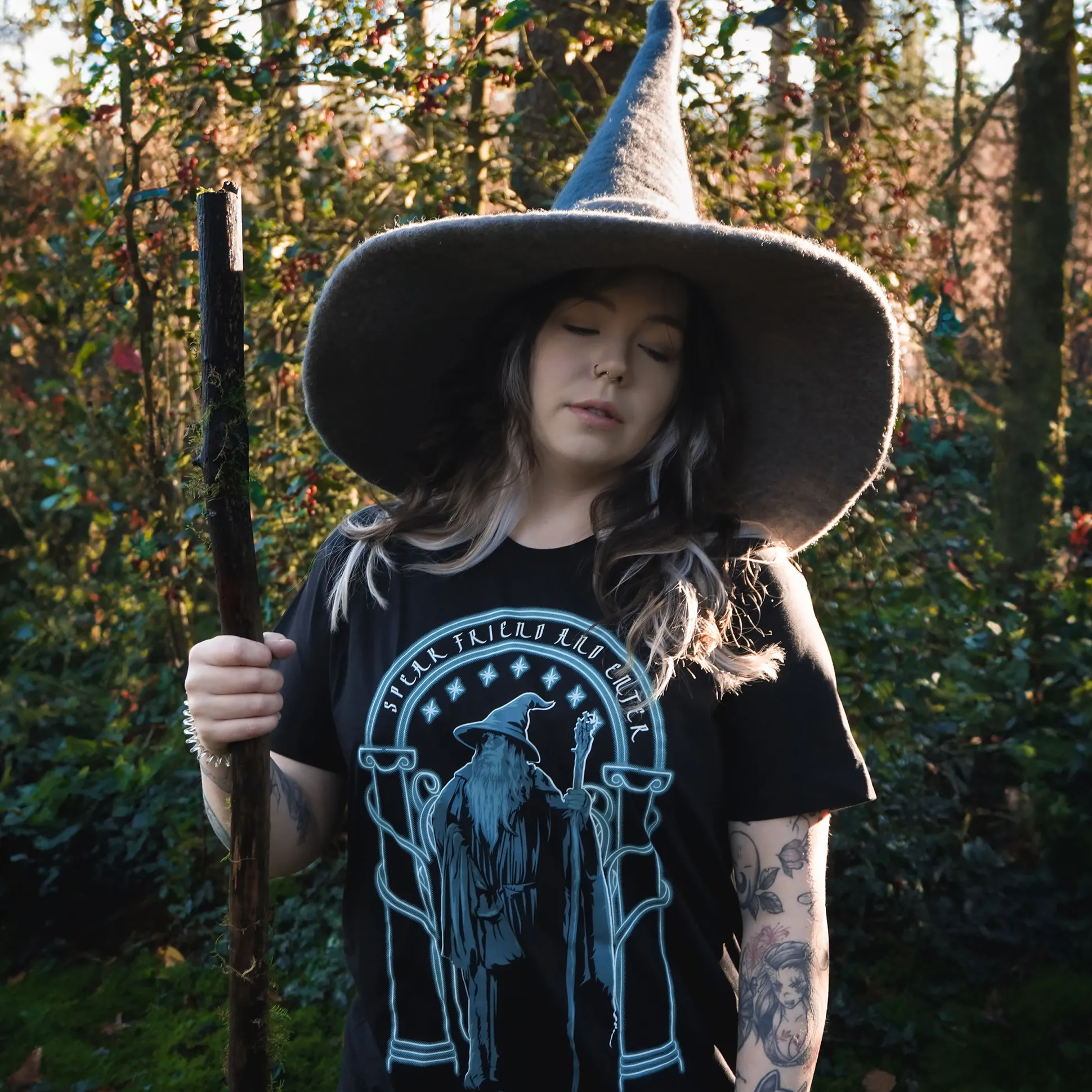Zeg ‘Mellon’ en je outfit stapt zo de legende binnen. Dit officieel gelicentieerde In de Ban van de Ring‑T‑shirt heeft een grote frontprint van Gandalf voor de Poorten van Durin, alsof Moria elk moment opengaat. Zwart, regular fit, klassieke ronde hals – past overal bij, van filmmarathons tot college. Een duidelijk fan‑statement, geen Balrog nodig. Voor iedereen die Midden‑aarde graag op de borst draagt.