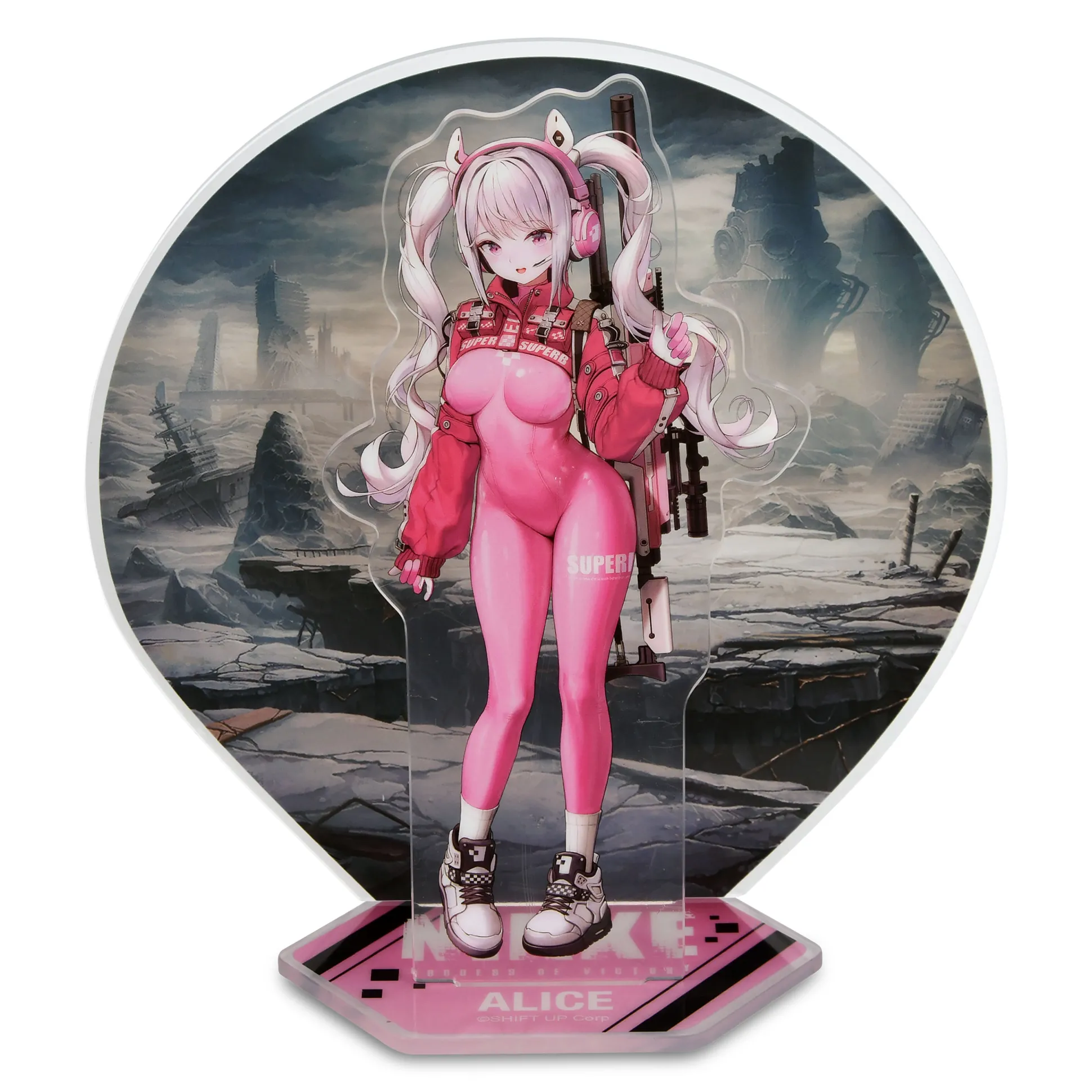 Breng Alice uit Goddess of Victory: Nikke zo je bureau op – als een strakke 2D-acrylfiguur met een opvallend 3D-effect. De set komt in drie delen die je simpel op elkaar klikt: figuur, achtergrond en een basis met logo die in seconden vastklikt. Dankzij de hoogwaardige print op helder acryl spatten de kleuren en blijven details vanuit elke hoek haarscherp.