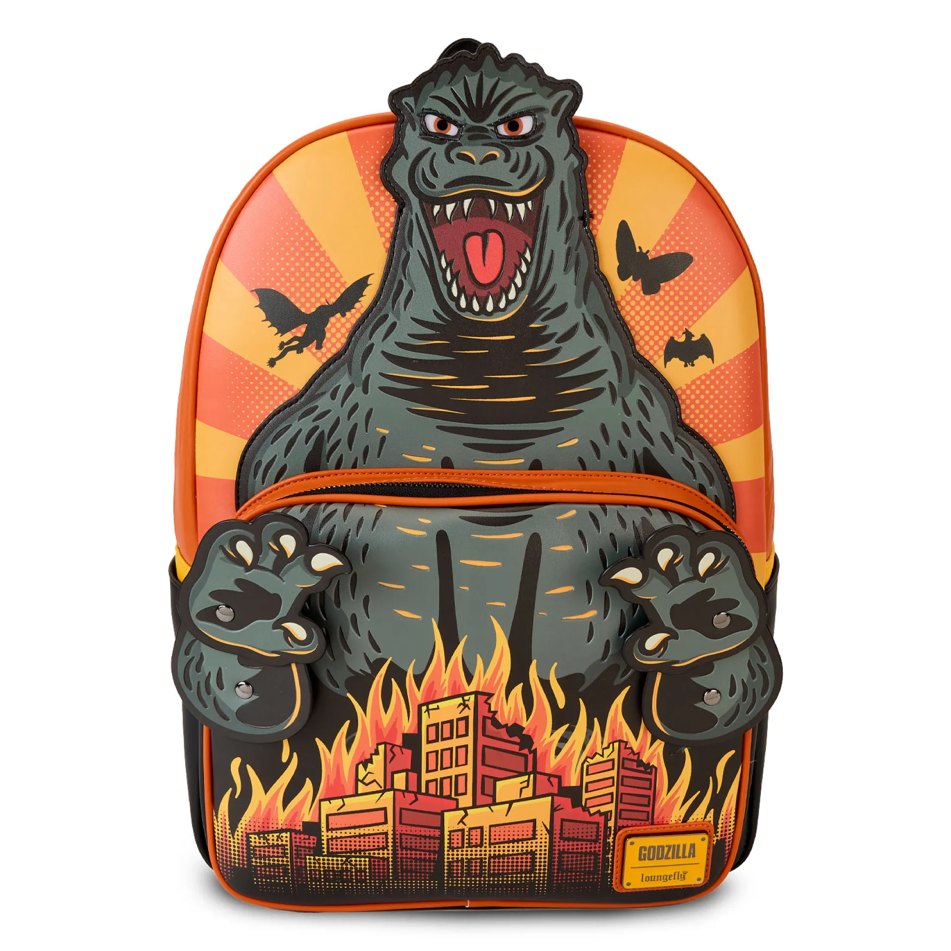 Als je dan toch een monster meeneemt, ga dan voor de koning: deze officieel gelicentieerde Godzilla-rugzak helpt je de dag door zonder één stad met de grond gelijk te maken. Het verhoogde Godzilla-design heeft beweegbare armen – ideaal voor mini high-fives, dramatische poses of om stiekem over je snacks te waken. In het hoofdvak vind je een insteekvak en een bedrukte voering die je kaiju-liefde ook van binnen laat zien. Voorop zit een ritsvak met een metalen Loungefly-label, en aan de zijkanten twee vakken voor flesjes of kleine spullen. Met verstelbare schouderbanden en handvat zit Godzi… uh, je rugzak, altijd comfortabel – naar college, kantoor of een monstermarathon. Afmetingen: 30 x 16 x 40 cm.