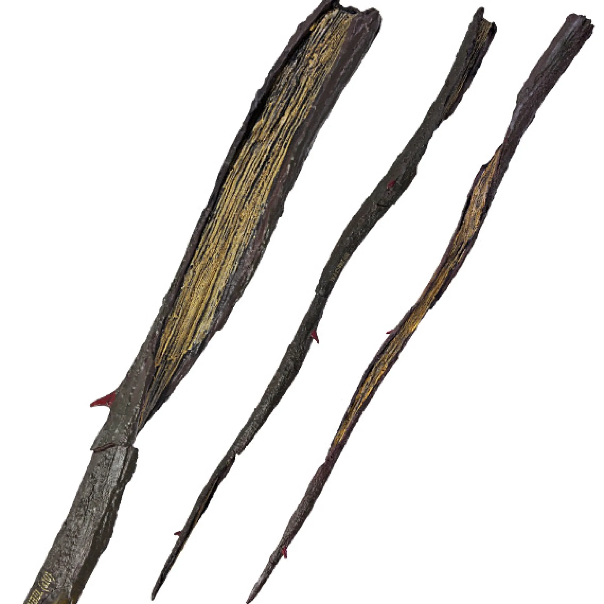Gellerts toverstaf is donkerbruin, zeer dun en licht. Het is ontworpen in de vorm van een gescheurde en gedroogde rozentak en is versierd met lichtrode doornen. Aan de binnenkant zijn de beige-bruine plantvezels zeer duidelijk te zien. Aan de buitenkant is de boomschors te zien, die ook op sommige plaatsen is gebroken en afbladdert. De toverstaf is niet recht, maar golvend en licht gedraaid zoals gedroogd hout.