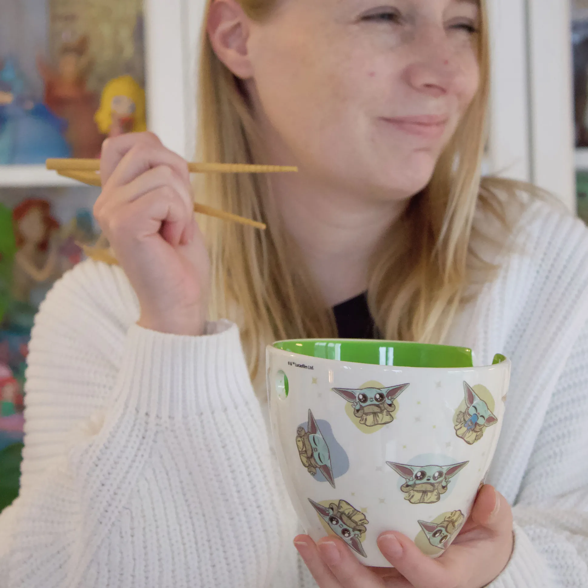 Snacktijd is sterk met deze. Deze officieel gelicentieerde Star Wars: The Mandalorian ramen set brengt Grogu zo naar je tafel. In de doos: een kom van 500 ml en bijpassende eetstokjes, beide met Grogu-motieven (ook wel Het Kind). De kom heeft een handige inkeping om je stokjes tussen slurpen in te parkeren – perfect als je nog één aflevering start. Ideaal als ramen bowl of voor muesli. Schattig, praktisch en binge-proof – geen Force nodig.