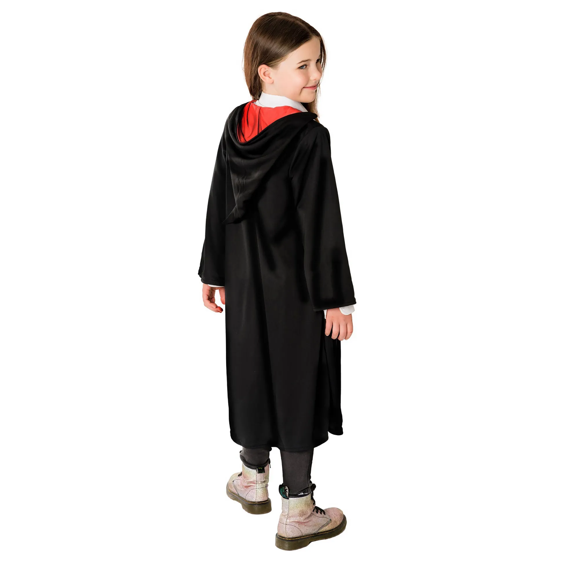 De zwarte mantel heeft een groot Griffoendor-wapen op de borst, zodat meteen duidelijk is bij welk Huis jouw jonge heks of tovenaar hoort. De puntkap zorgt voor een dramatische entree op het schoolplein of tijdens carnaval, en de sluiting aan de voorkant houdt alles netjes op zijn plek – ook tijdens fanatieke „Wingardium Leviosa“-oefensessies.