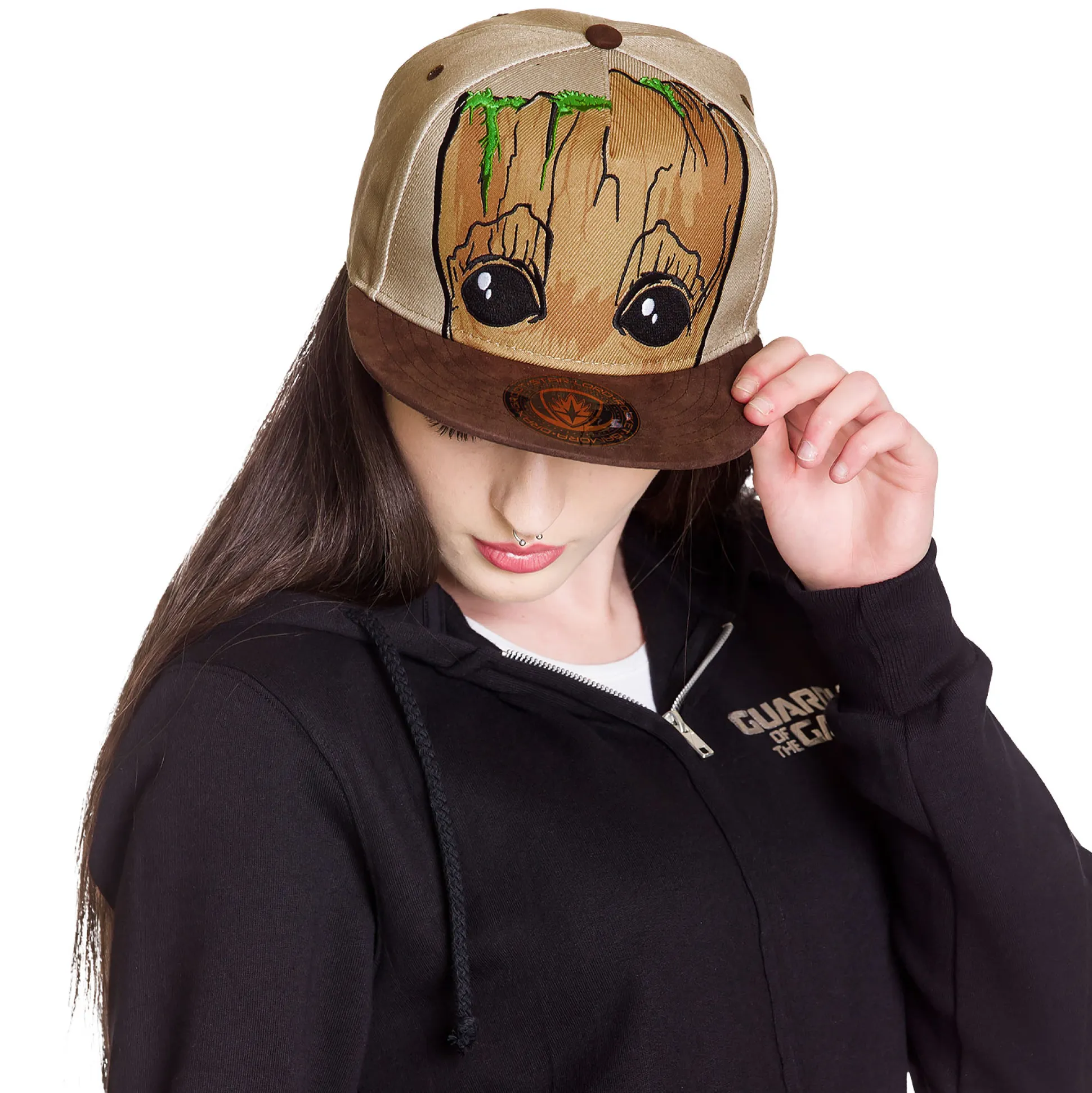 Klaar voor een intergalactische make-over? Pak dan de Guardians of the Galaxy – Groot Snapback Cap en laat aan de aarde (en de rest van het universum) zien hoe echte fans eruitzien! Met een geborduurde Baby Groot op de voorkant ben jij vanaf nu de schattigste held in de buurt – of je nou danst, strijdt of lekker relaxed. De officiële Guardians cap is bruin, heeft het logo achterop en een verstelbare drukknoopsluiting. Hij kan tegen een stootje (behalve als je te wild groeit). Groot approves, en je kapsel trouwens ook.