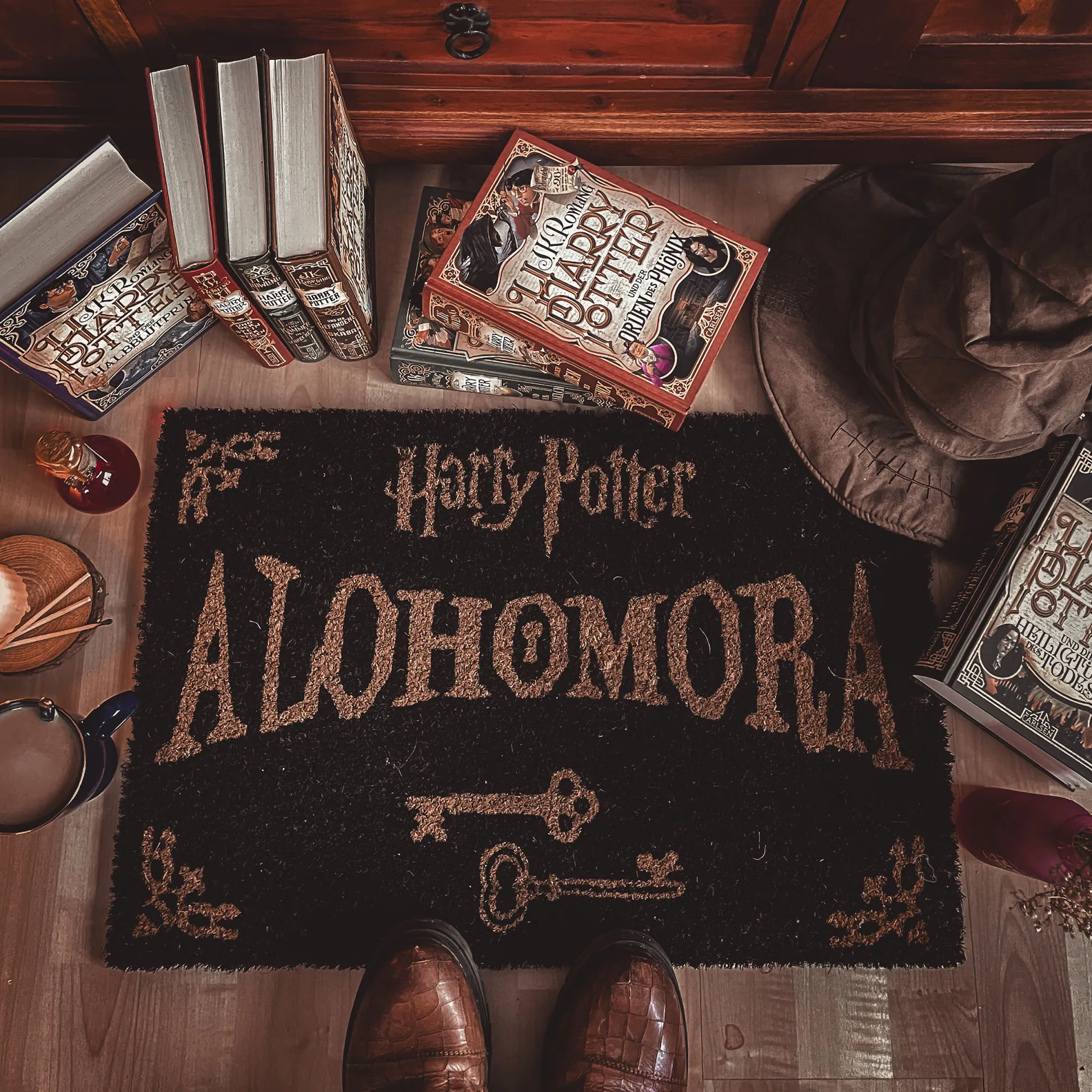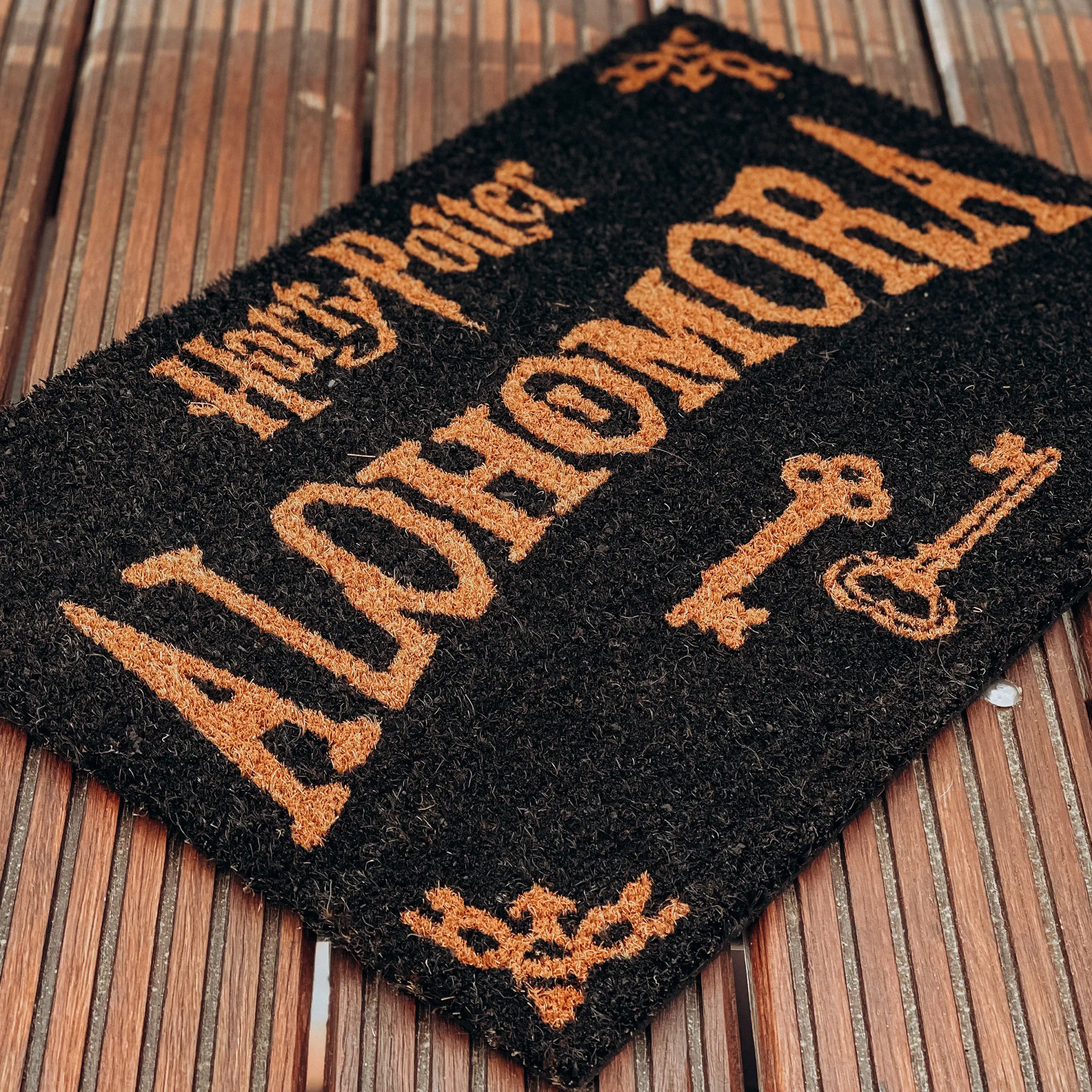 In de magische wereld van Joanne K. Rowling opent de spreuk Alohomora alle deuren, mits deze niet betoverd zijn. Voor degenen die, in tegenstelling tot Hermelien, niet altijd de juiste spreuk paraat hebben, geldt: echte magie zit in de gastvrijheid van een uitnodigende deurmat. De Harry Potter Alohomora Deurmat siert de huizen van Harry Potter-fans en Dreuzels. De 60 x 40 cm mat is gemaakt van kokos en is antislip, licht- en waterbestendig.