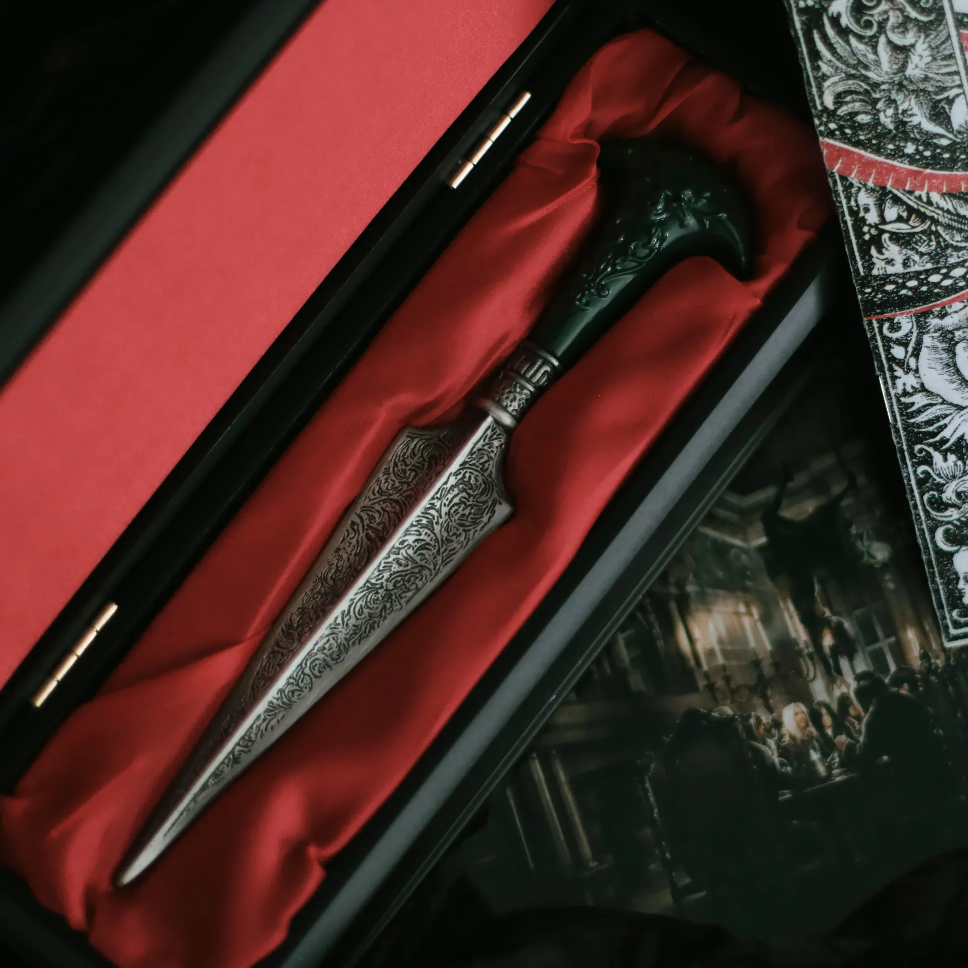 De dolk van de Dooddoener Bellatrix Lestrange uit Harry Potter en de Relieken van de Dood – Deel 1. Hier als een nobele editie voor verzamelaars.