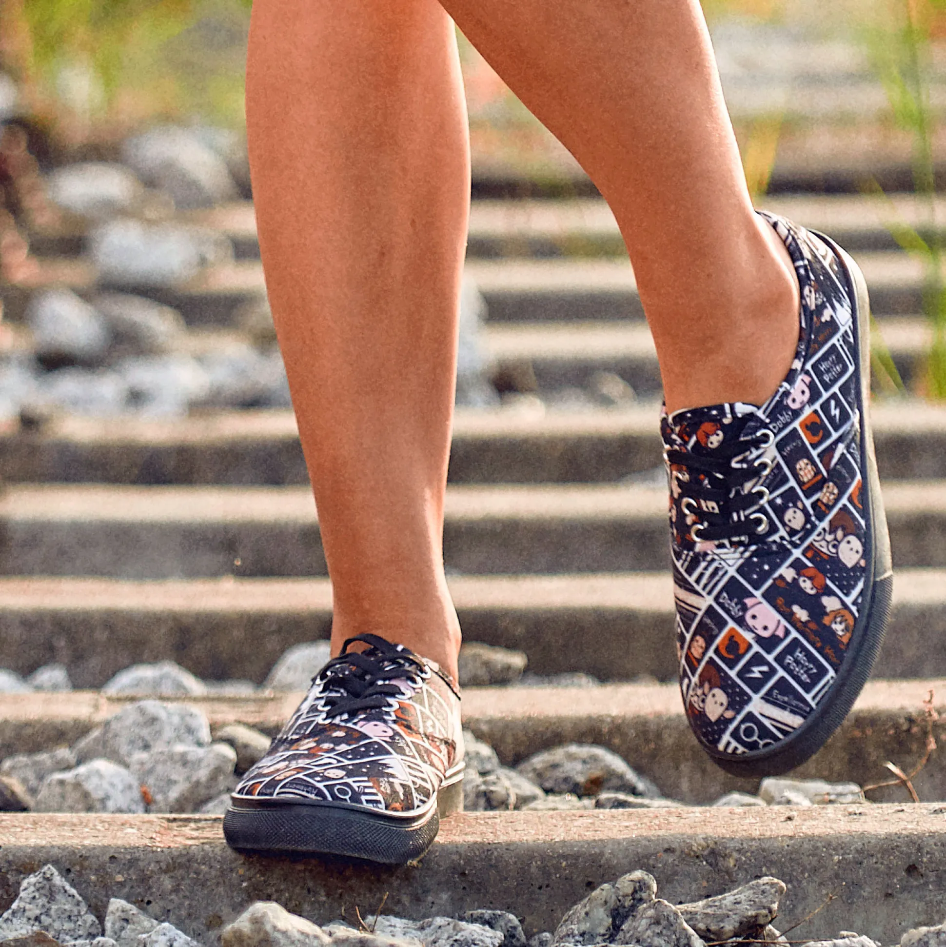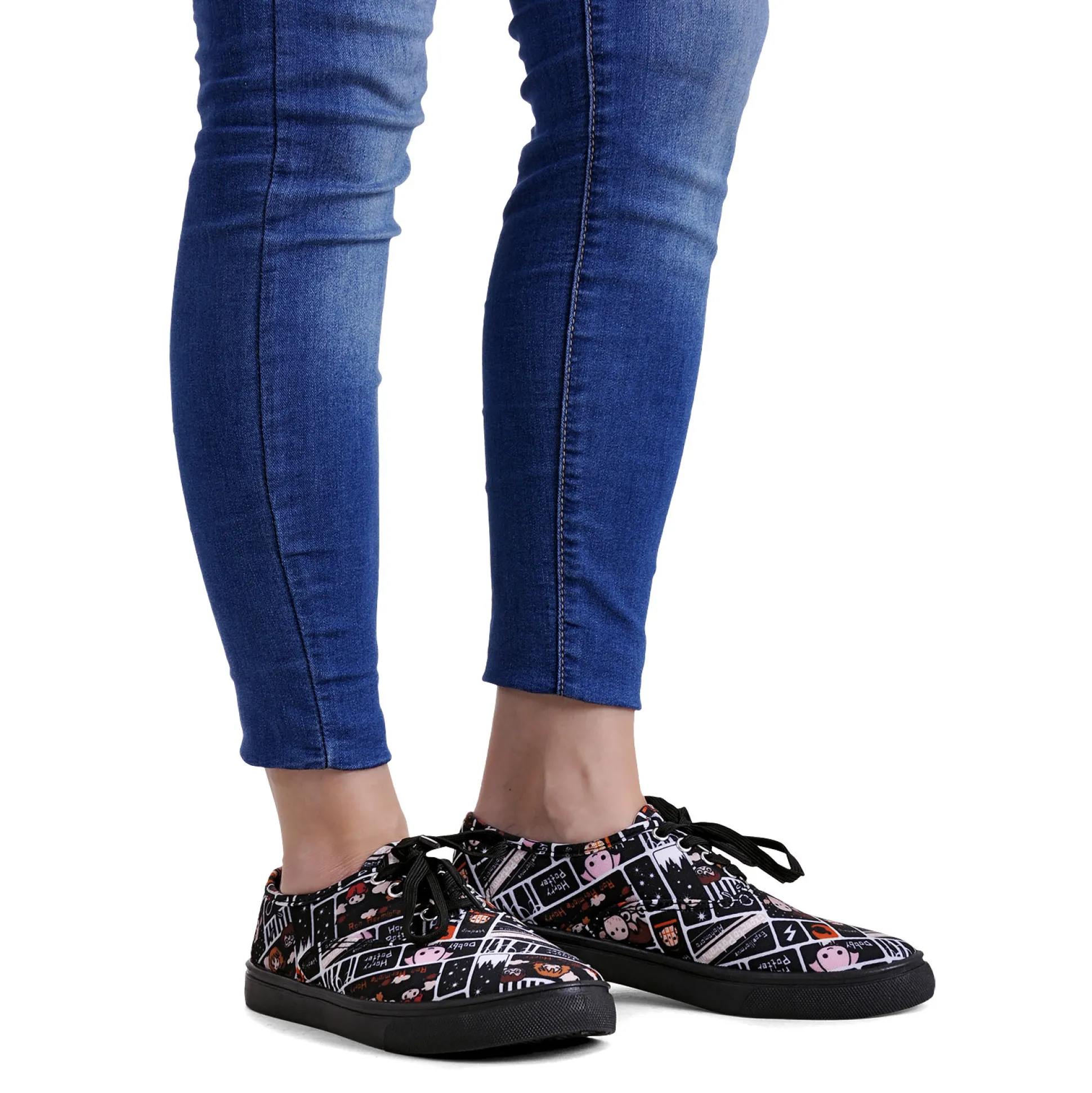 Waarom Harry, Ron, Hermelien, Hedwig en Dobby zoeken in het Verboden Bos als je ze gewoon overal mee naartoe kunt nemen? Ontmoet de gloednieuwe Harry Potter Chibi Sneakers voor dames! Officieel gelicentieerd, supercomfortabel en bezaaid met schattige mini-tovenaars op je voeten. Veters gestrikt en jouw dagelijkse wandeling verandert in een magisch avontuur door Zweinstein. Stoere zwart-witte look, stijlvol Chibi-design – zelf Filch’s kat gaat er spontaan van spinnen. Jouw schoenen. Jouw magie.