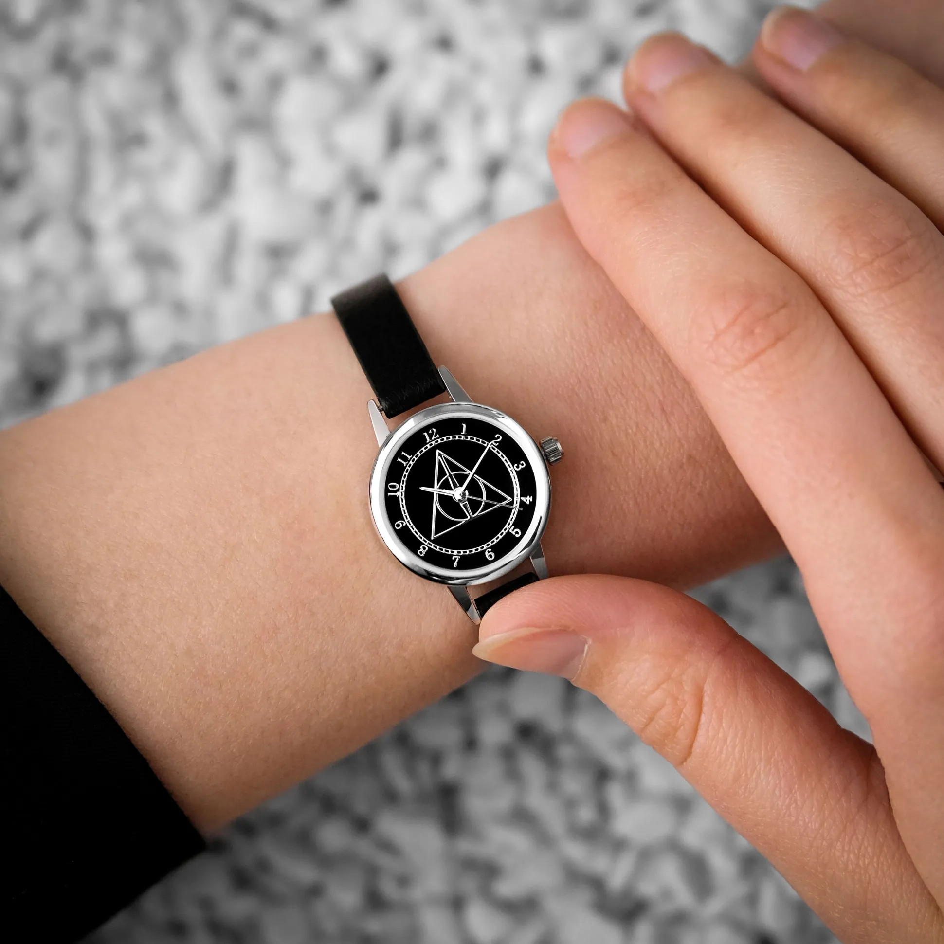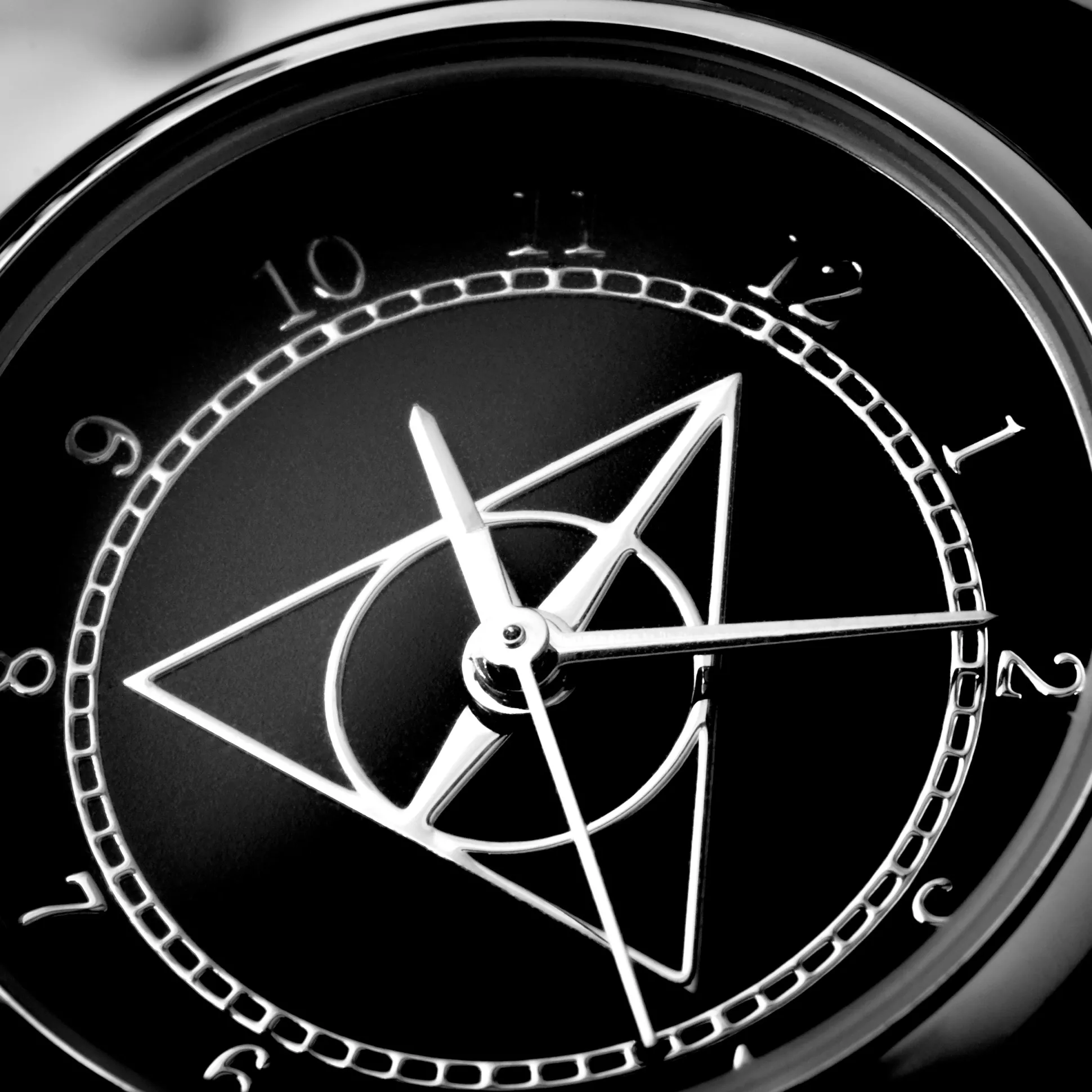 - Symbool van de Deathly Hallows op wijzerplaat