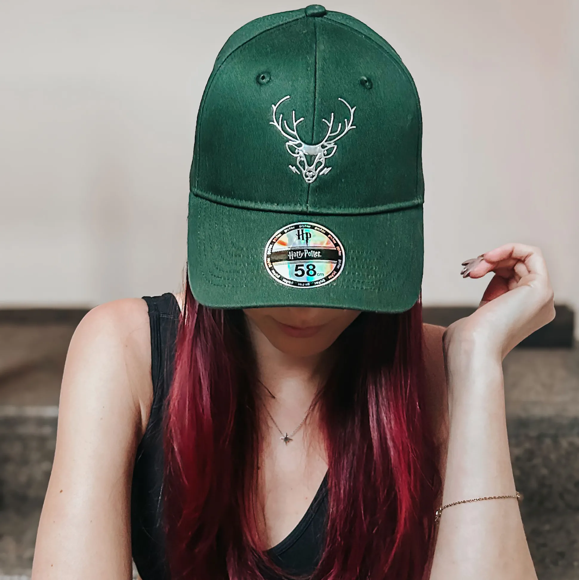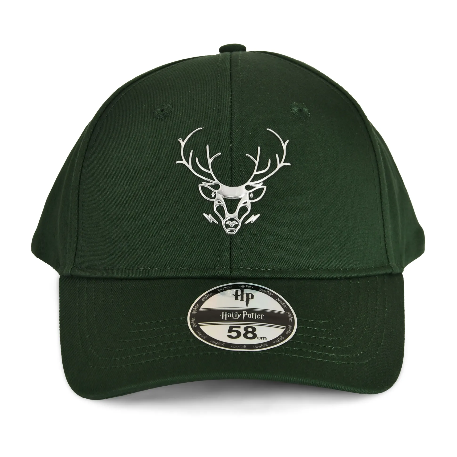 Zin in wat Patronus-power voor zonnige dagen? Deze groene Harry Potter-cap geeft meteen bescherming én fan-vibes. Voorop waakt een verhoogd herten-Patronus; achter laat de geborduurde spreuk „Expecto Patronum” zien welke magie je beheerst. Dankzij de verstelbare snapback-sluiting zit hij precies goed — of je nu Dementors achterna zit of gewoon de volgende bus. Officieel gelicentieerd en klaar om elke outfit af te maken.