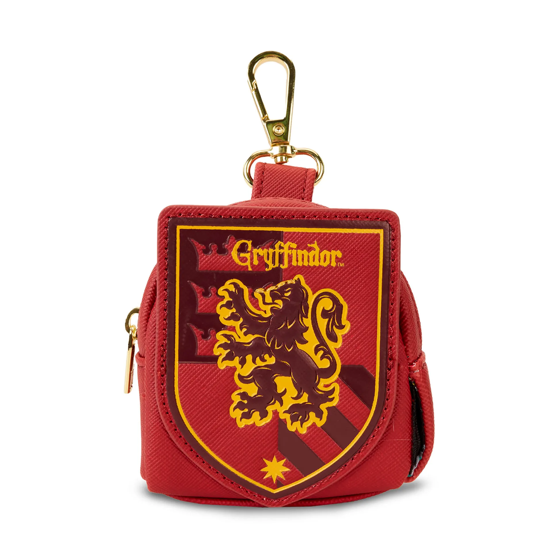 Moed, durf en… snacks? Deze officieel gelicentieerde Harry Potter tassenhanger zet het verhoogde wapen van Griffoendor op je tas, met karabijnhaak om ’m razendsnel vast te klikken. Met 8 x 4 x 4 cm is het het ideale snacktasje en bergt, afhankelijk van de missie, ook muntjes, oordopjes of andere kleinigheden op. Achterop zorgt een siliconen Loungefly-label voor de finishing touch. Voor iedereen die zijn Griffoendor-trots – en snacks – graag altijd bij zich heeft.