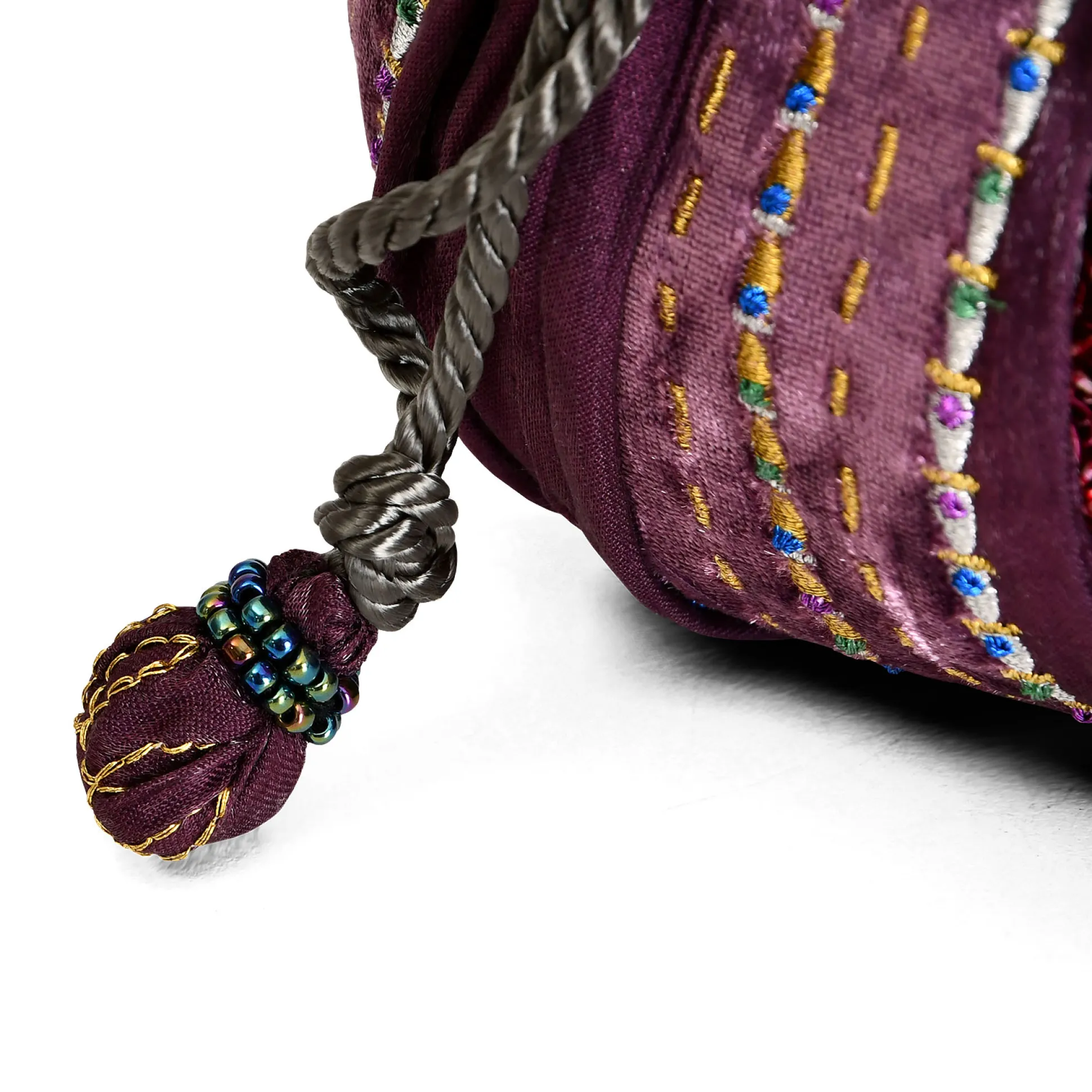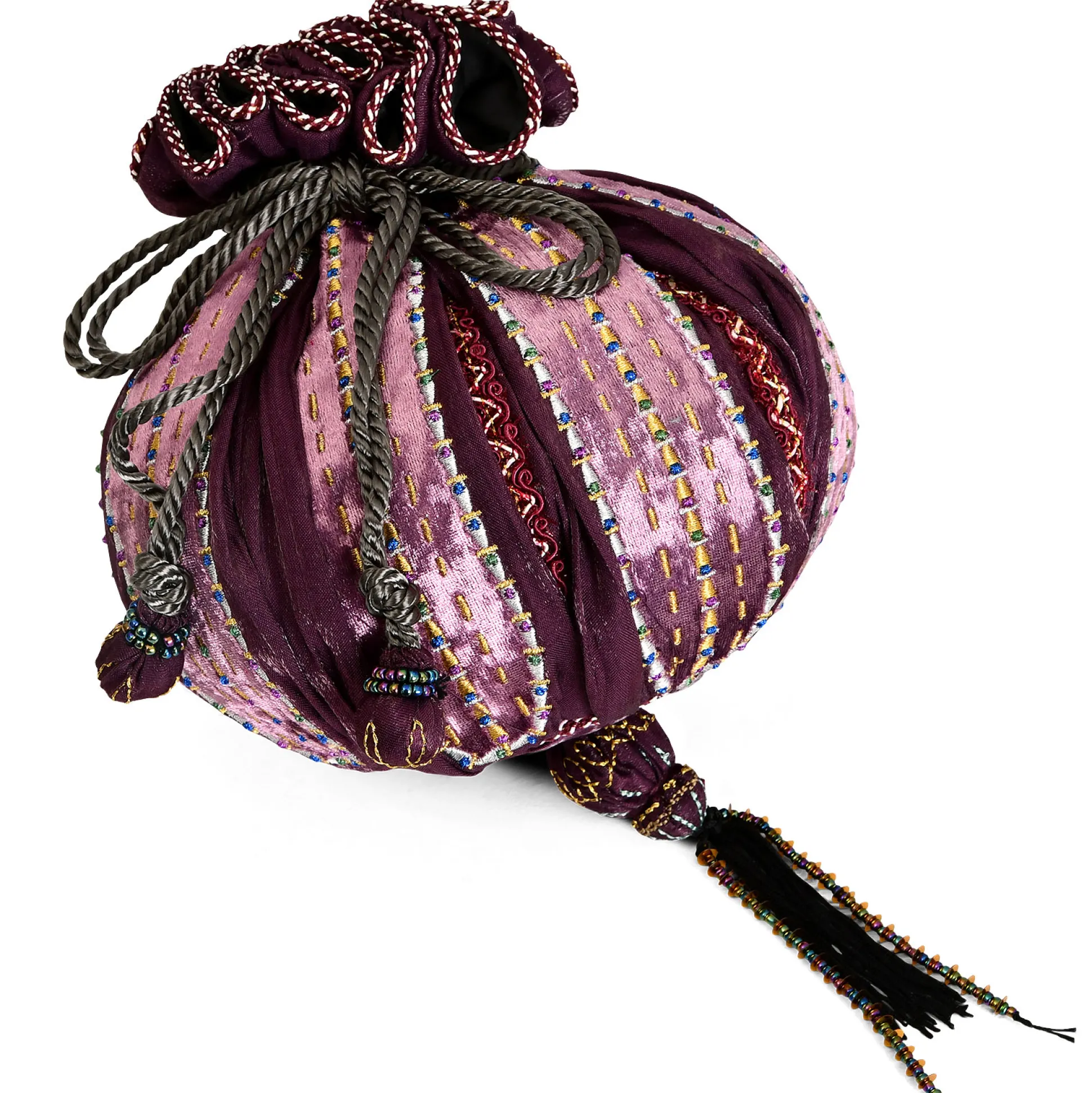 - kleurrijk en uitgebreid bewerkt, rijkelijk geborduurd en versierd
