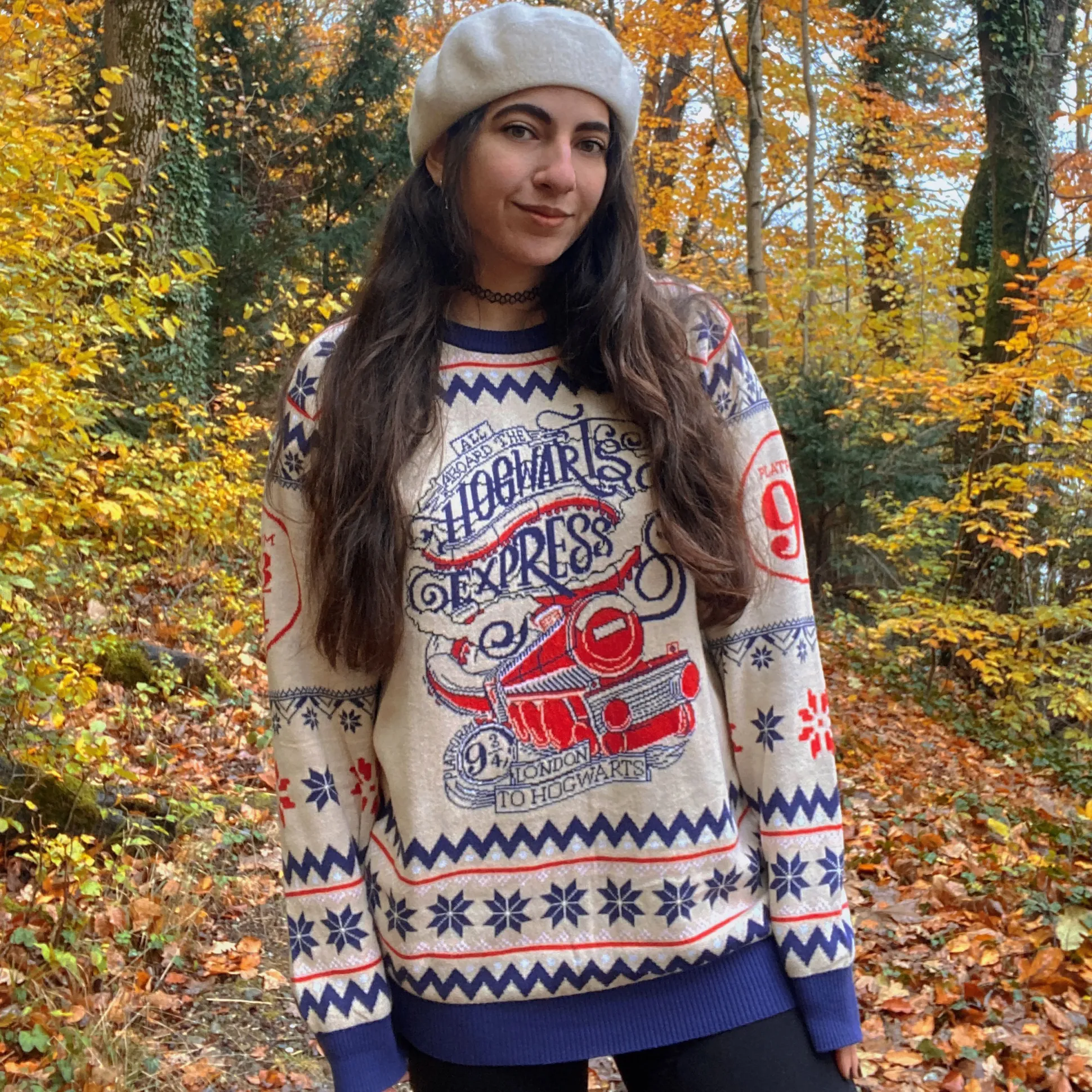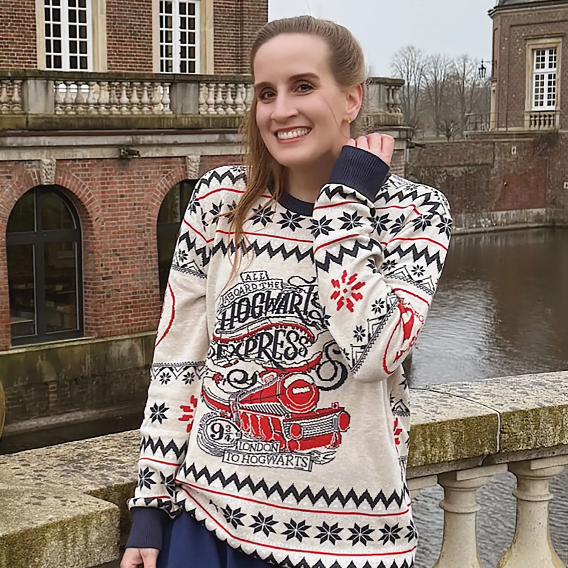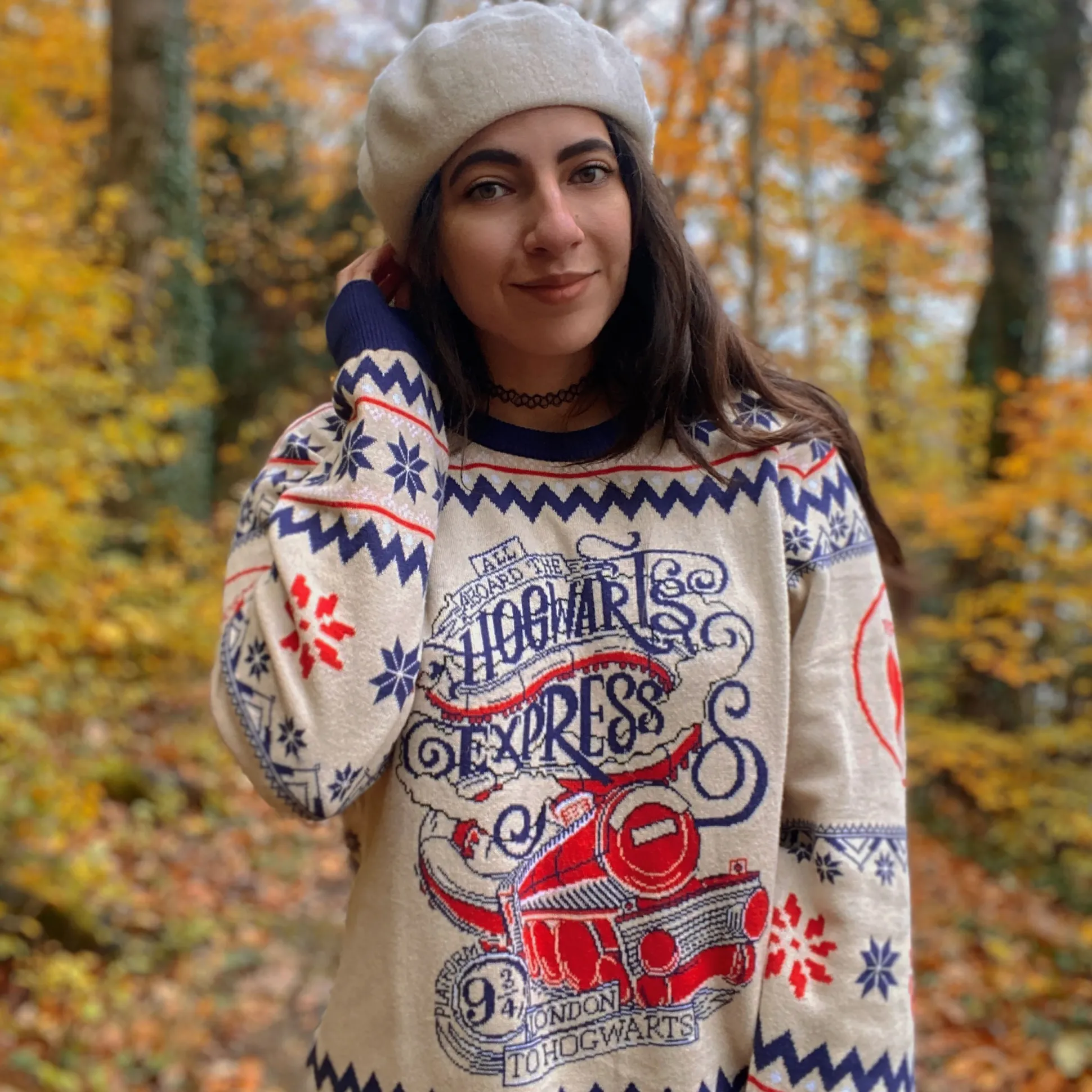 Alles aan boord van de Hogwarts Express — bestemming: het knusse seizoen. Deze officieel gelicentieerde Harry Potter-trui geeft je favoriete trein een feestelijke upgrade: klassiek Fair Isle-patroon voor en achter plus mouwdetails met Perron negen en driekwart. De ultieme foute kersttrui voor heksen, tovenaars en dreuzels.