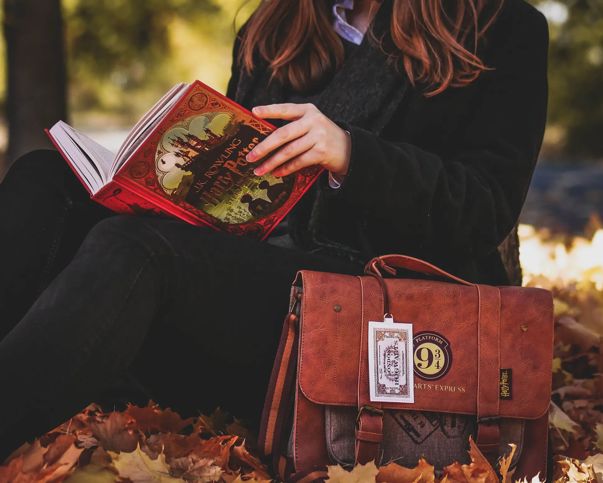Afmetingen: 23,5 x 31 x 9,4 cm. Officieel gelicentieerd, in klassiek bruin – perfect voor ritjes tussen de dreuzelwereld en het Ministerie van Toverkunst.